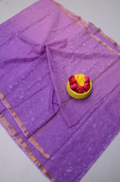 Light purple Kota Doria All Over Embroidery Work Saree
