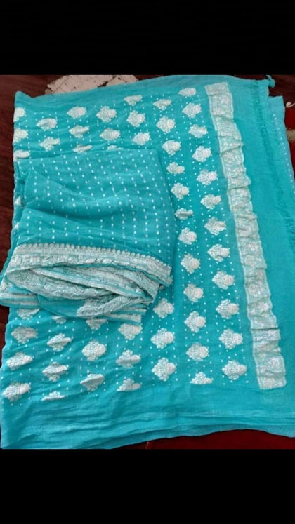“Neelpari” Light blue heavy fancy Chikankari Gota patti Salwar Suit Unstitched