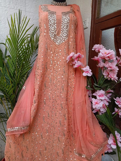 Look and feel your best ethnic self by purchasing your traditional wear from Jhakhas. With a wide range of options and variety available for every event you can possibly imagine, shipping and delivery is hassle free. Salwar suits in georgette, gotta patti, chiffon, maheshwari, chikankari, banarasi are some of the many fabrics and designs we have to fulfill all your ethnic needs. At Jhakhas, you get the finest quality and craftsmanship of textiles since we source directly from the artisans and karigars making this beautiful pieces.