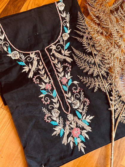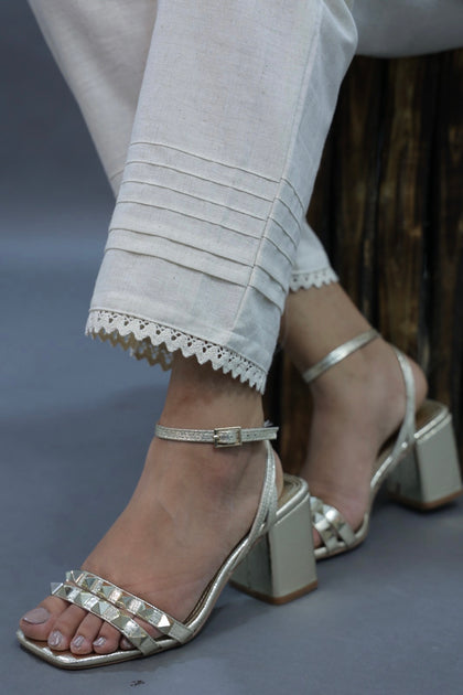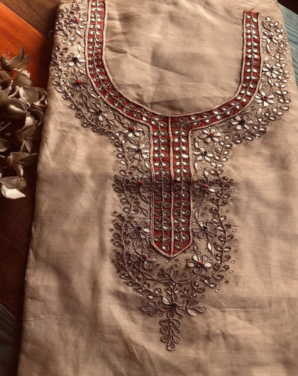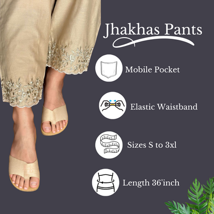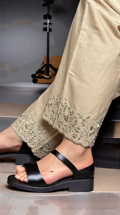 Chamki Zardosi-Zari Embroidery Beige Straight Pant In Cotton