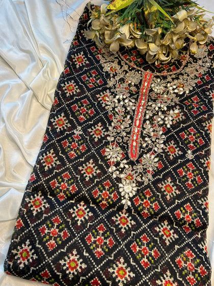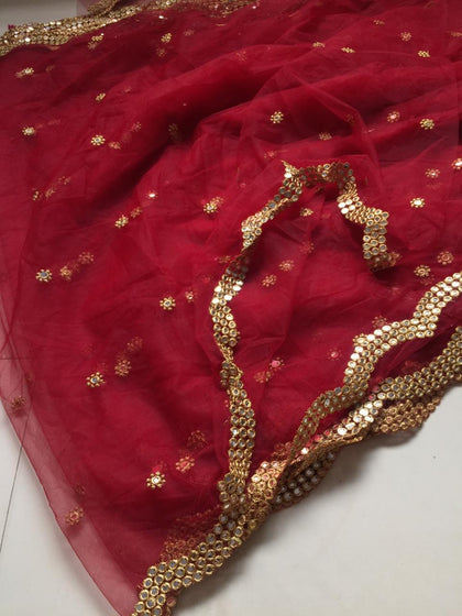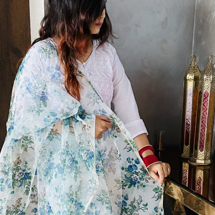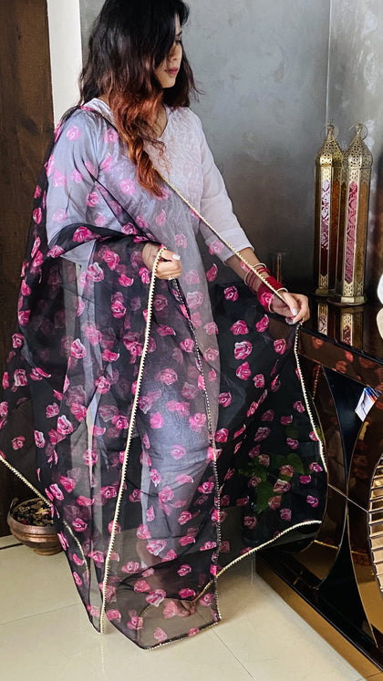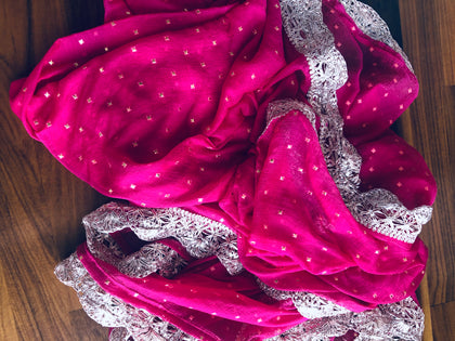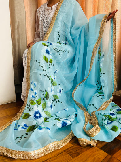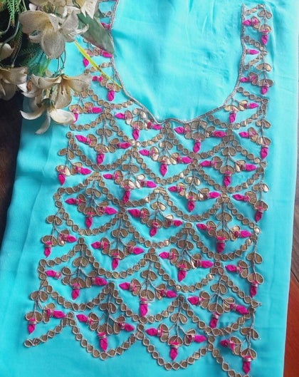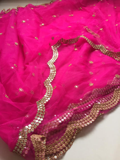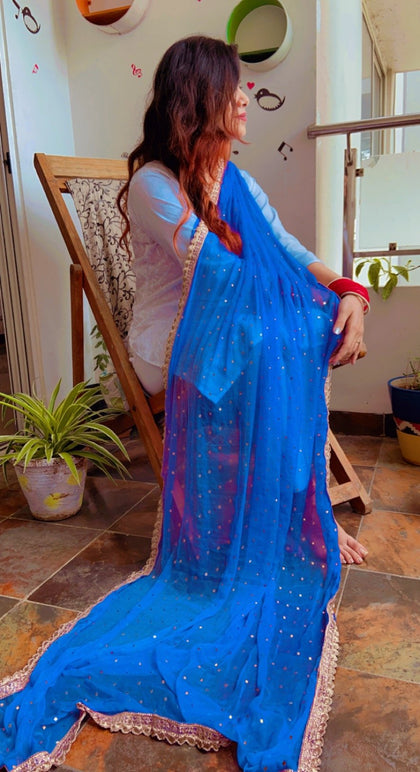 Blue Gota Patti Kurta With Pink Banarsee Dupatta