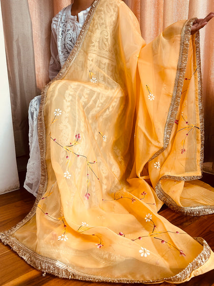 Orange Designer Organza Dupatta