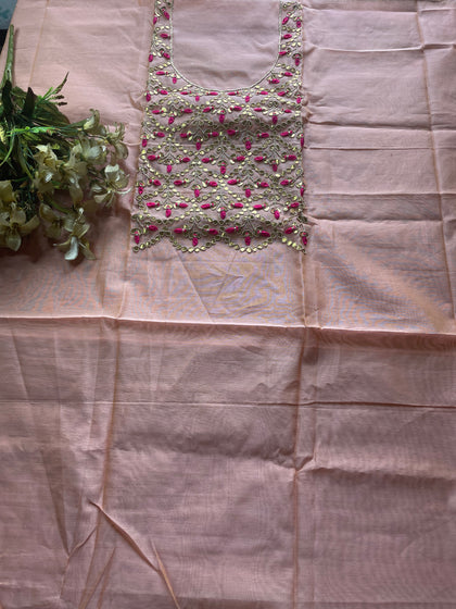 Peach Gota Patti Cotton Silk Kurti