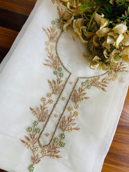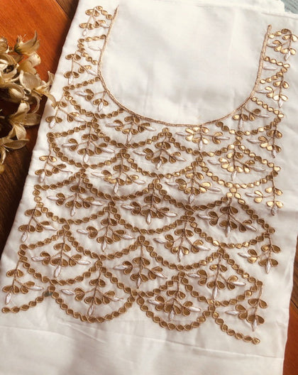 Varika Beige Straight Pant Full thread Work Pant In Cotton