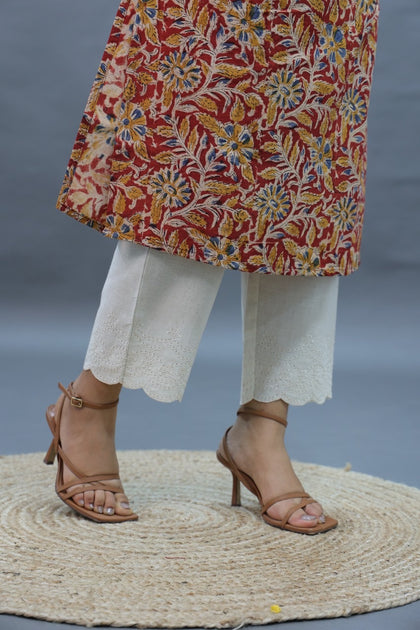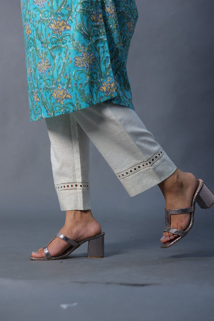 Anisha Beautiful Cream Straight Pant In Cotton For Women