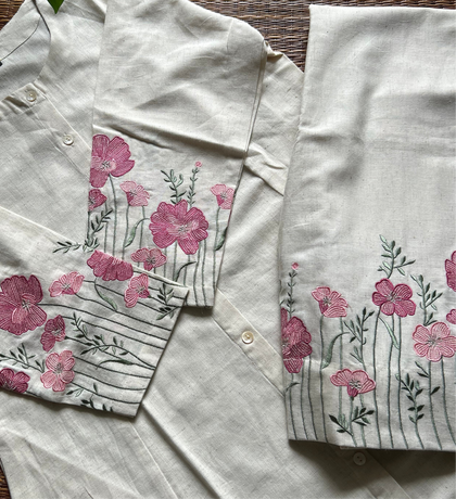 Avni Beige Stylish Comfortable Cord Set With Pink Embroidery Work