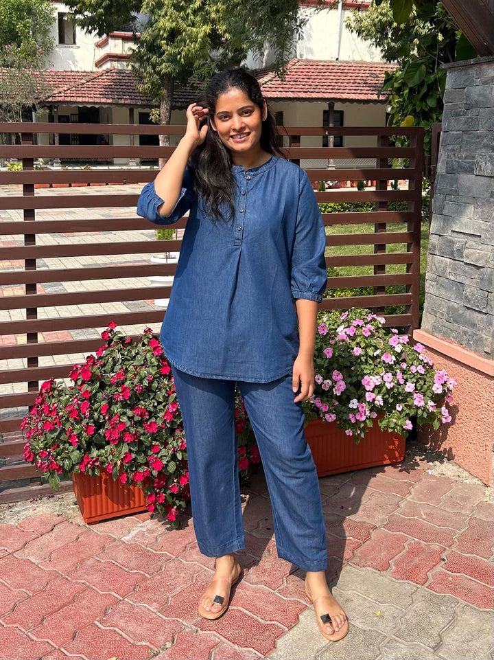 - Front Button 3/4 sleeves cotton kurti paired with ankle palazzo