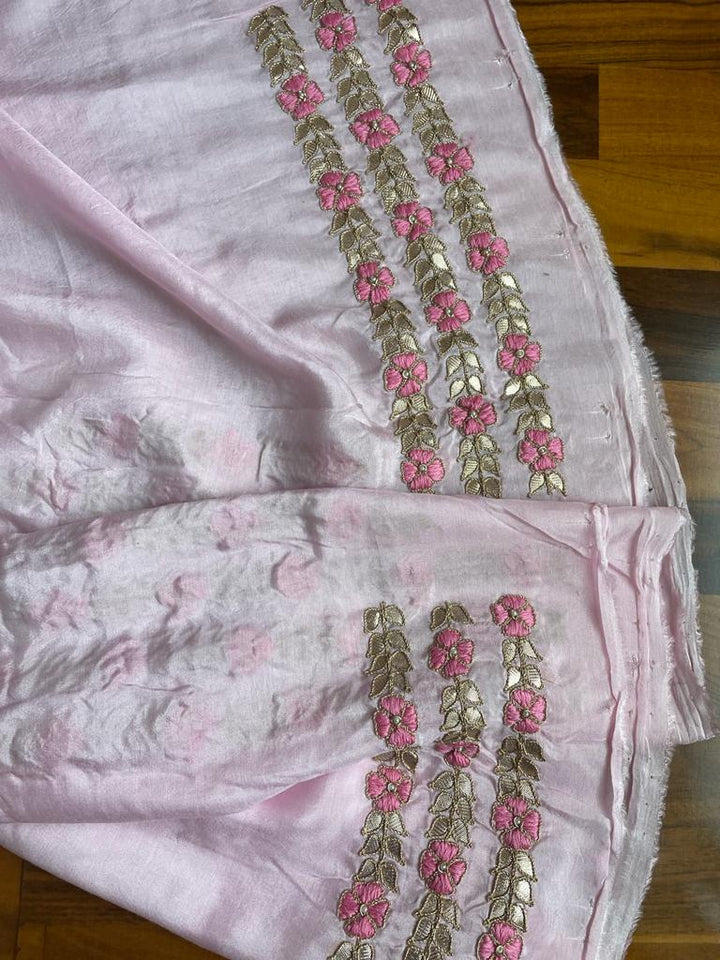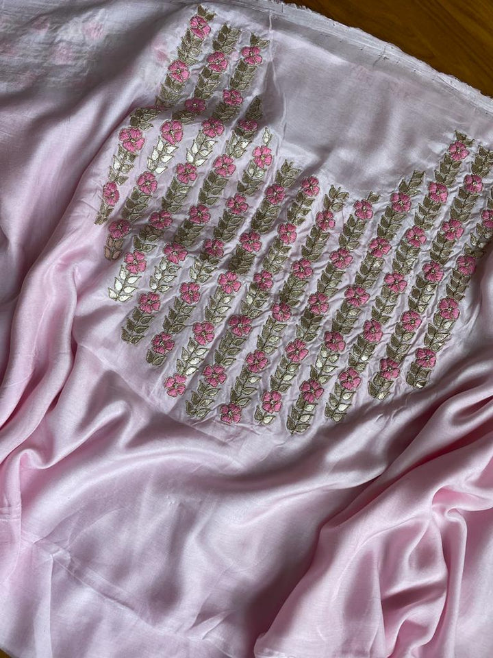 On hand embroidred sarees and suits there may be little variations in Colour or Embroidery due to hand dyed the hand embroiderd process of making each product unique and hence the shade tone may vary by 3-5% .