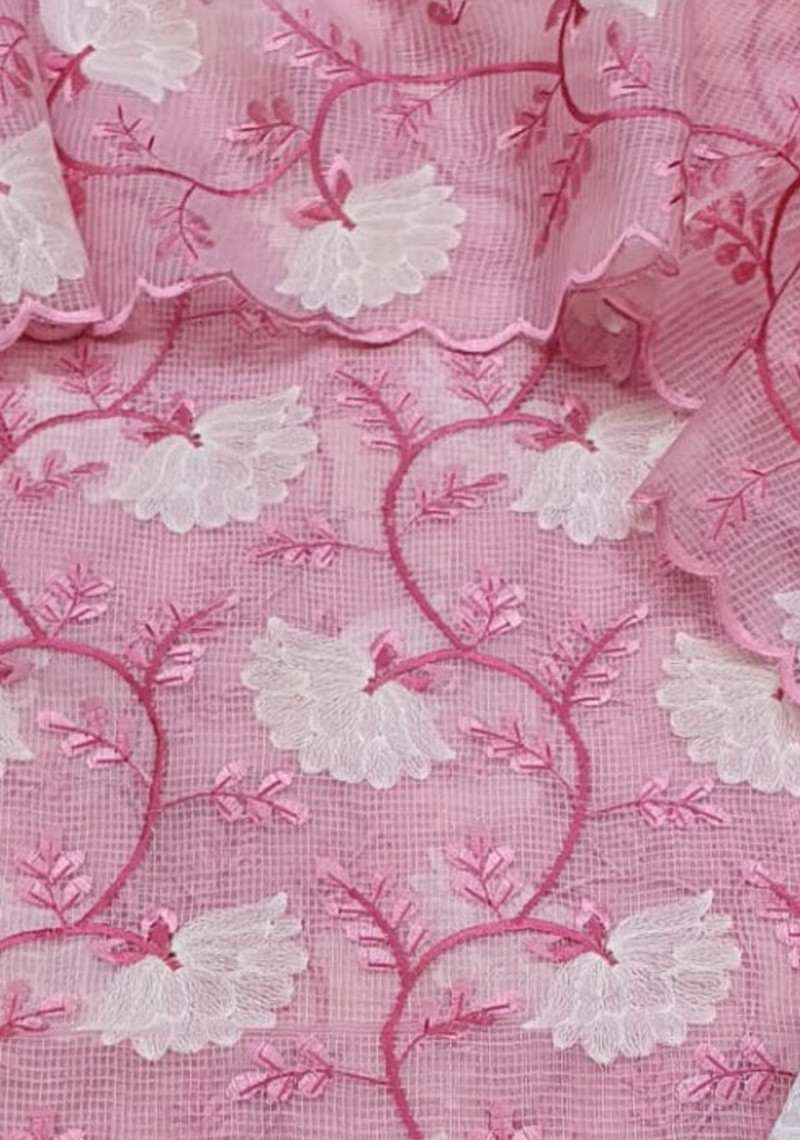 Phool- Beautiful Kota Doriya Embroidery Work Suit In Baby Pink. This Traditional Suits 2.5 Mtr Top In Kota ,2.5 Mtr Dupatta In Kota,2.5 Mtr Bottom In Cotton, Wear This Kota Doria Suit With Kundan Necklace And Jhumkas On Day Time Function, This Designer Suit Comes With Beautiful Dupatta That Seems Perfect For Any Occasion,Free Shipping And Cod Available, Shipping Worldwide.
