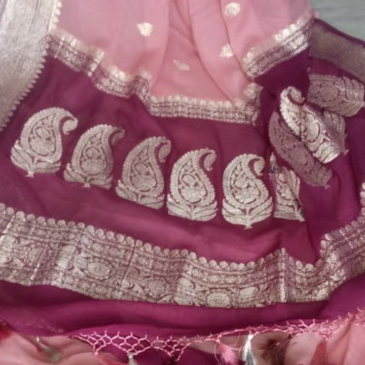 - Designer Pink-Wine Ombre Jaal Pure Banarasi Khaddi Georgette Saree