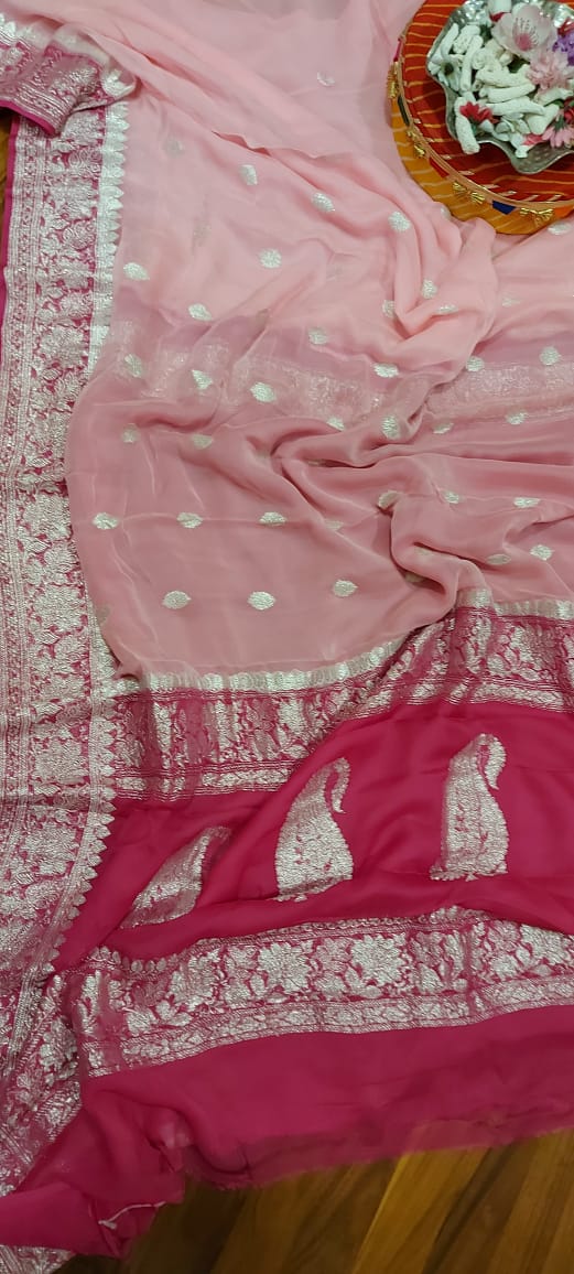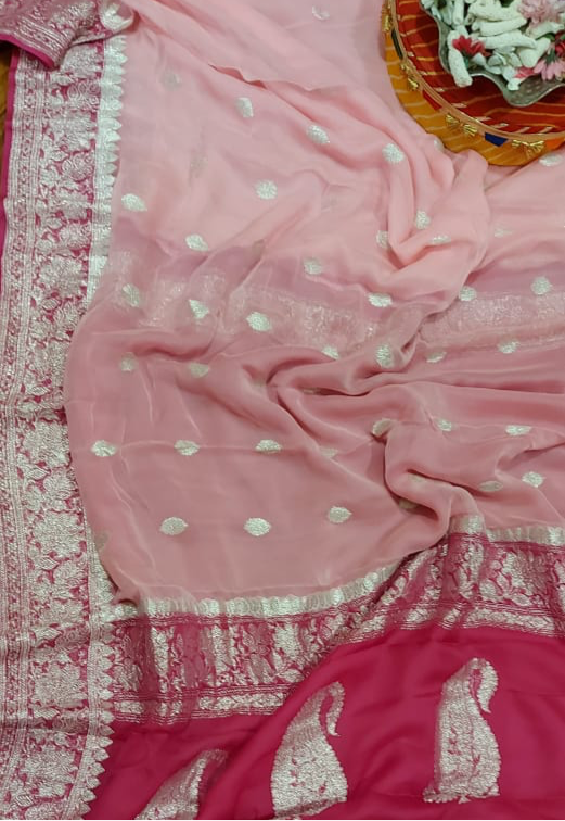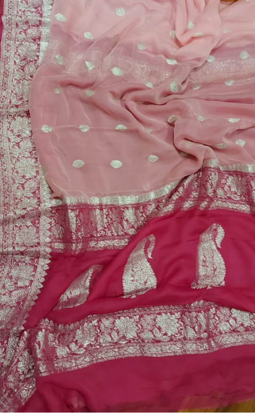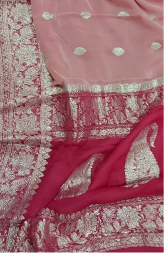 - Designer Dark-Light Pink Jaal Pure Banarasi Khaddi Georgette Saree