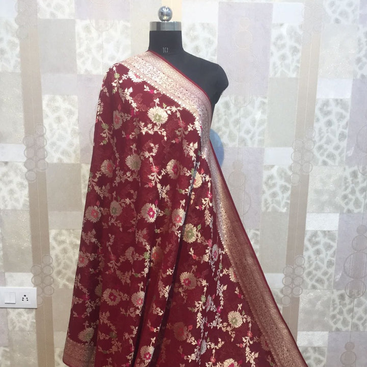 Maroon Banarasi Floral Jaal Saree