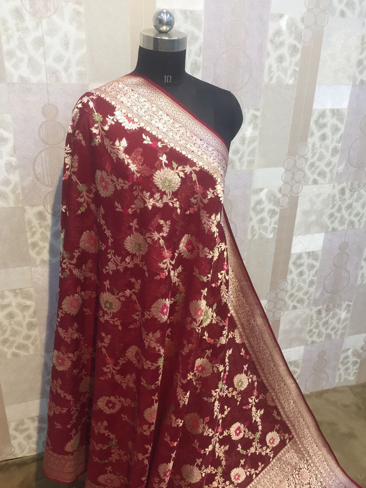 - Maroon Banarasi Semi-Georgette Jaal Saree