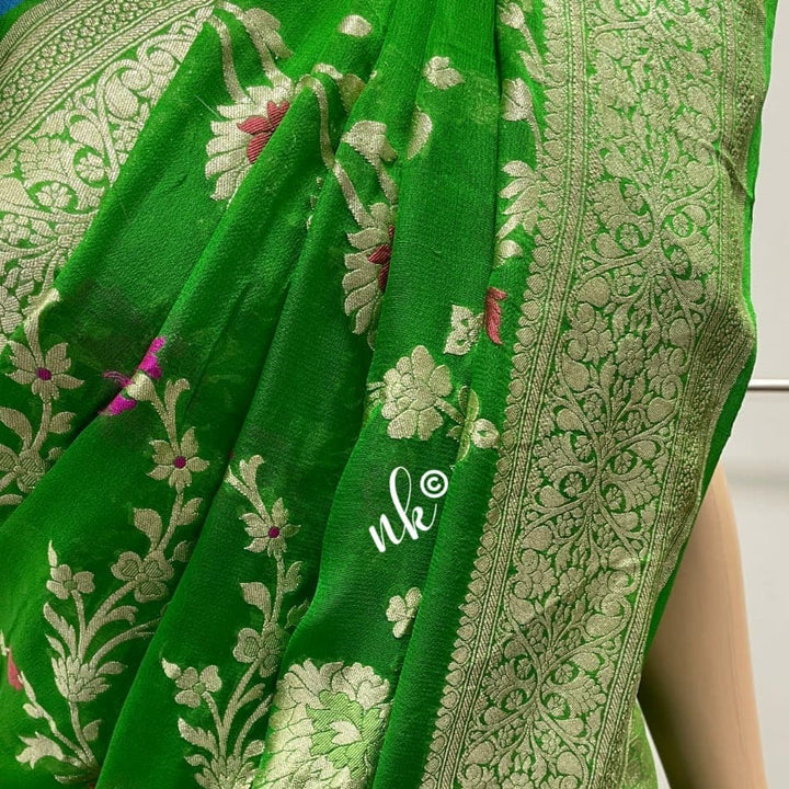 - Pear Green Banarasi Semi-Georgette Jaal Saree