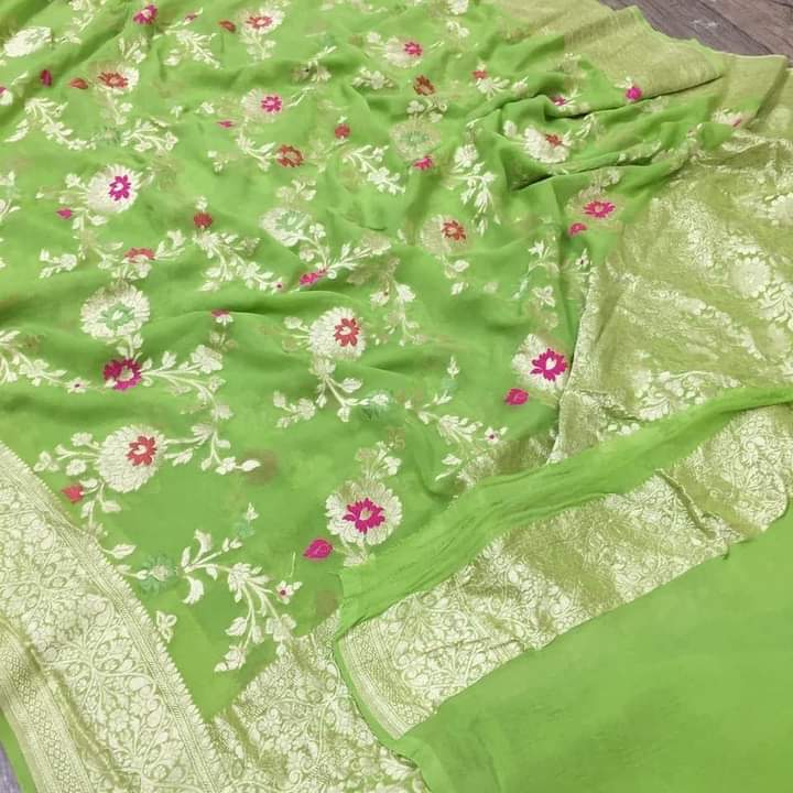 - Light Green Banarasi Semi-Georgette Jaal Saree