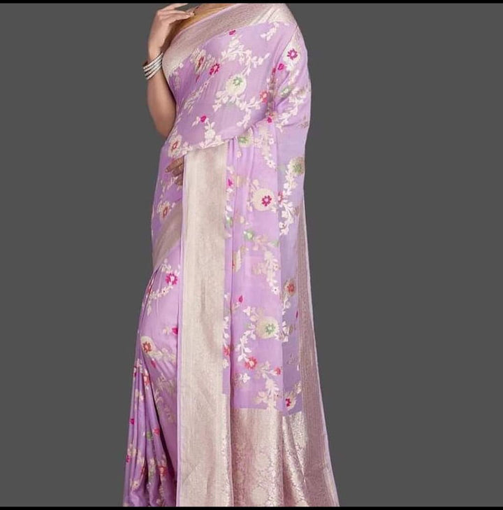 - Light Purple Banarasi Semi-Georgette Jaal Saree