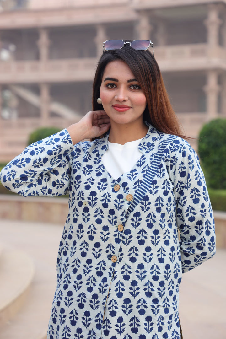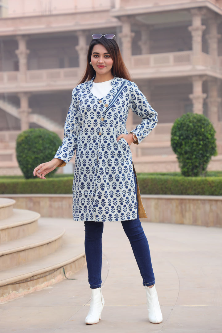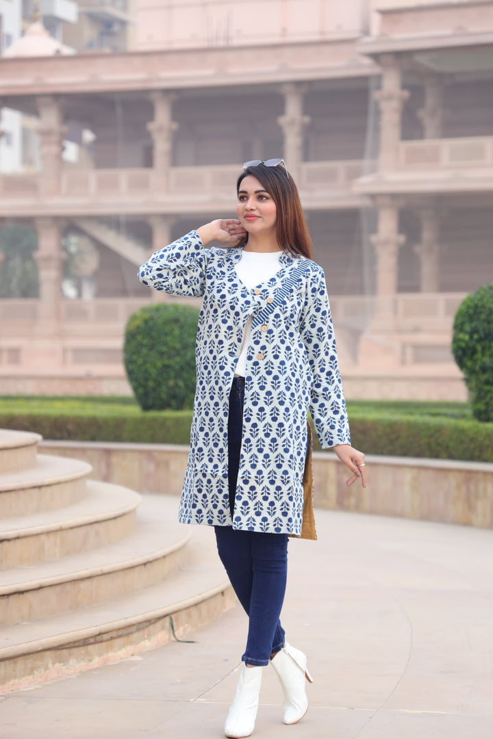 Beautiful Off White Bagru Hand Block Printed Pure Cotton Winter Jackets