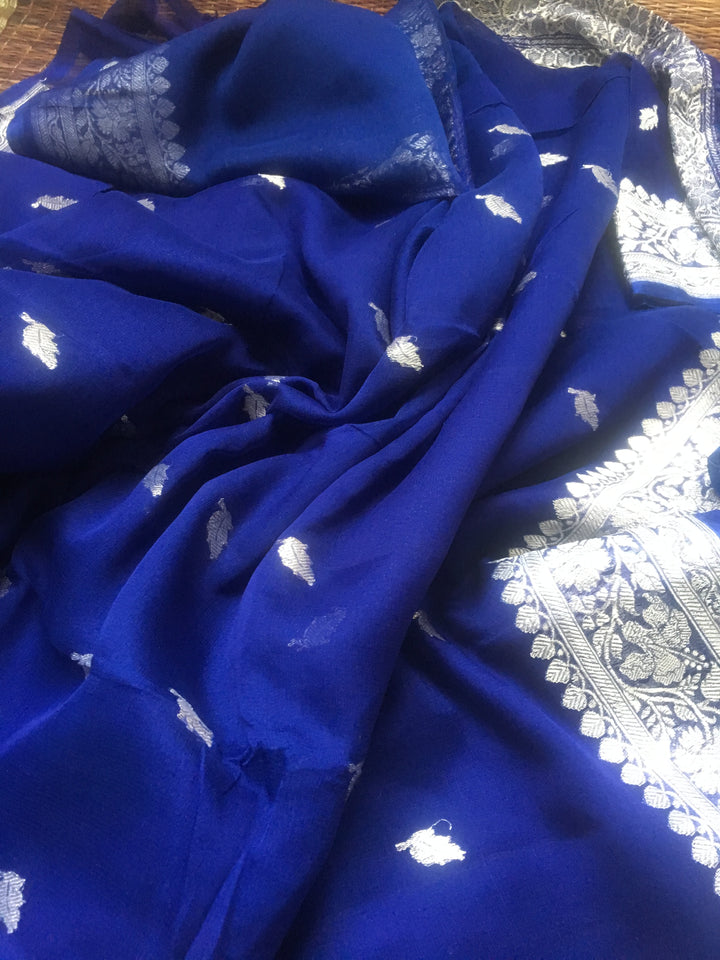 Royal Blue Banarasi Jaal Khaddi Chiffon Saree