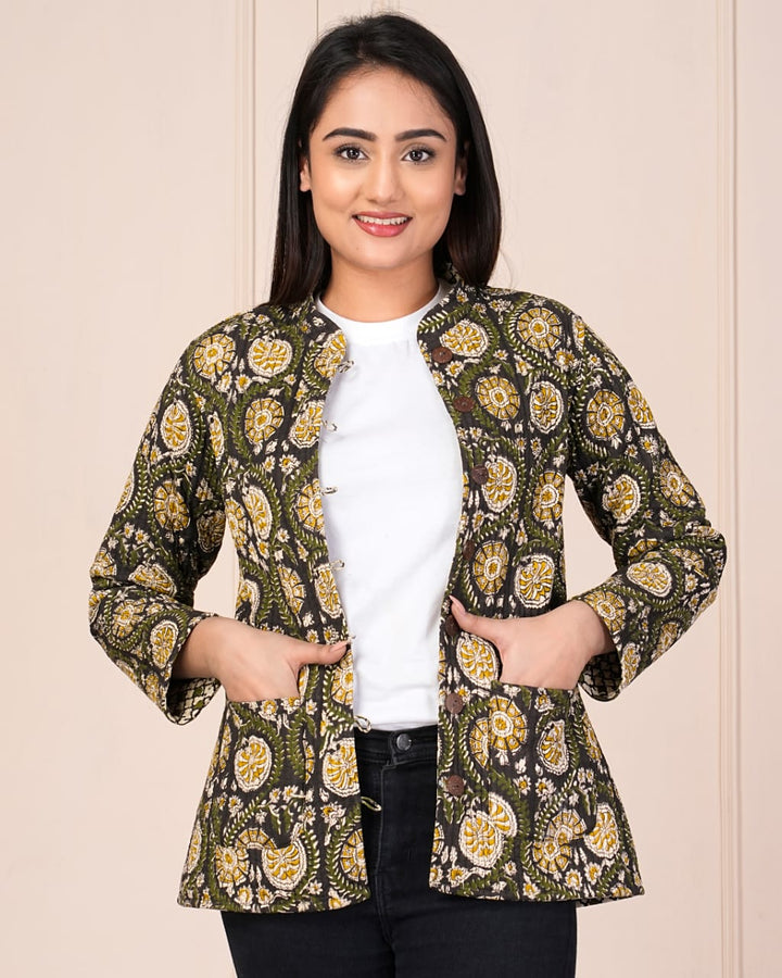 Beautiful Green Pure Cotton Quilted Reversible Print Jackets