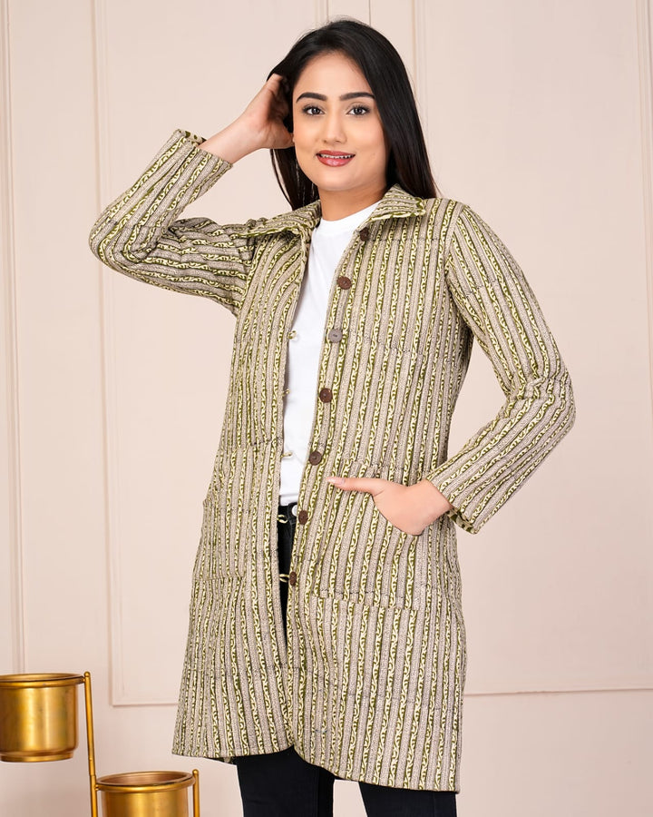 Beautiful Brown Pure Cotton Quilted Reversible Print Long Jackets