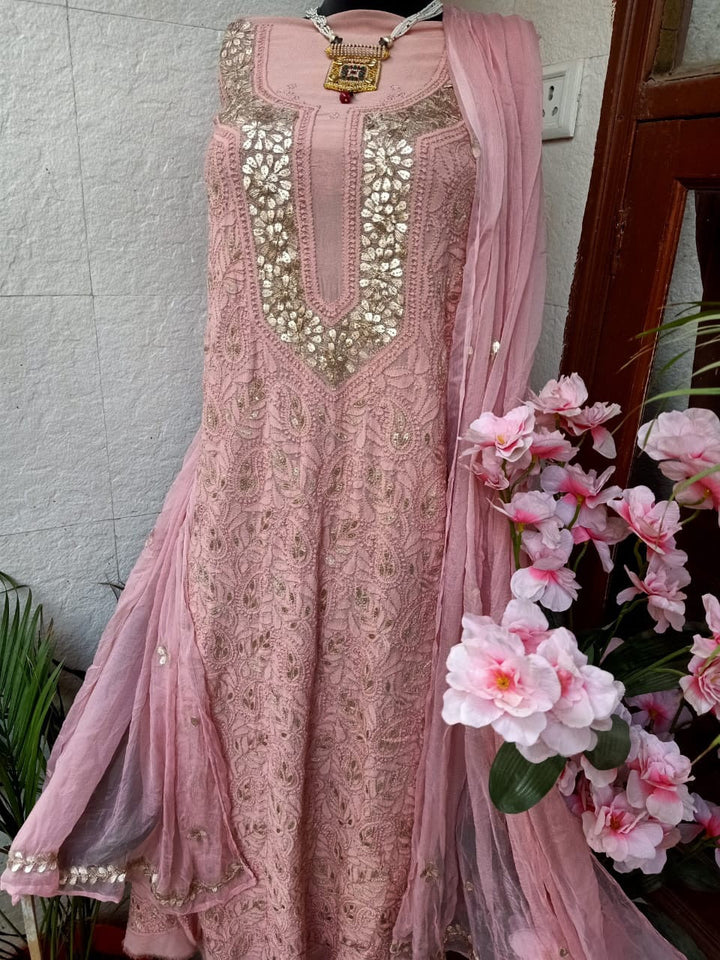 Parveen-Pink Lakhnawi Chikankari Gota Salwar Suit