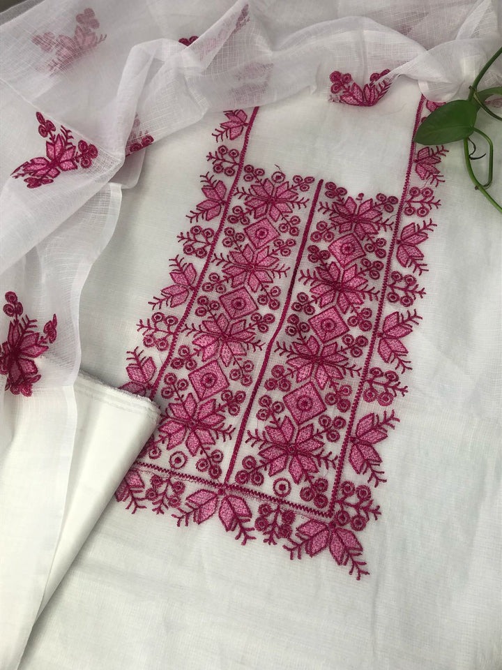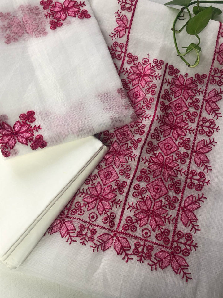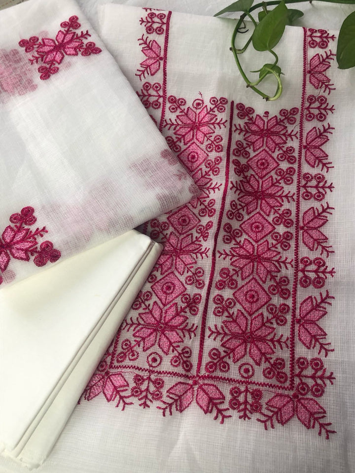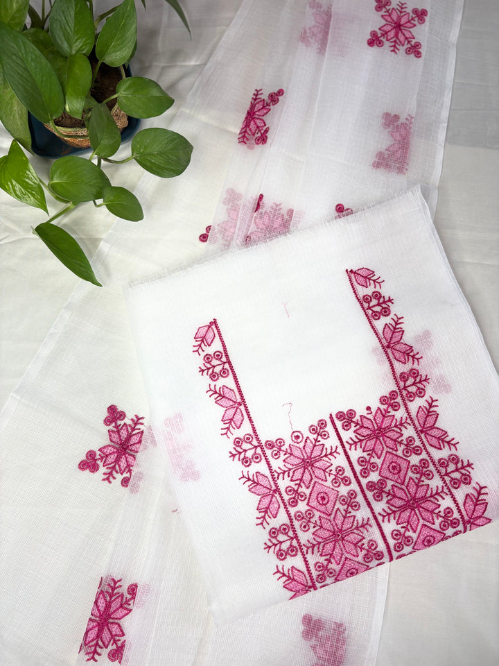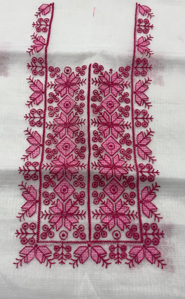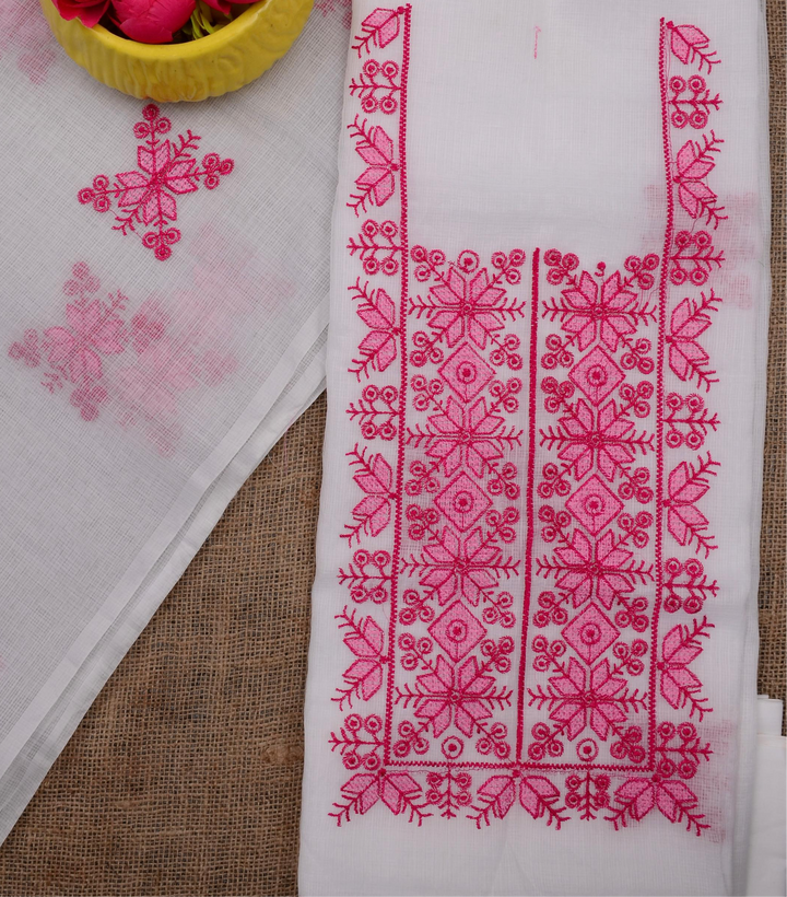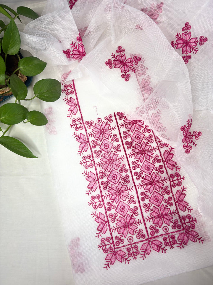 Chanda- Beautiful Kota Doria Suit In white Colour With pink Embroidery Work