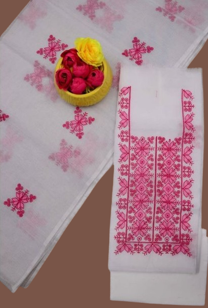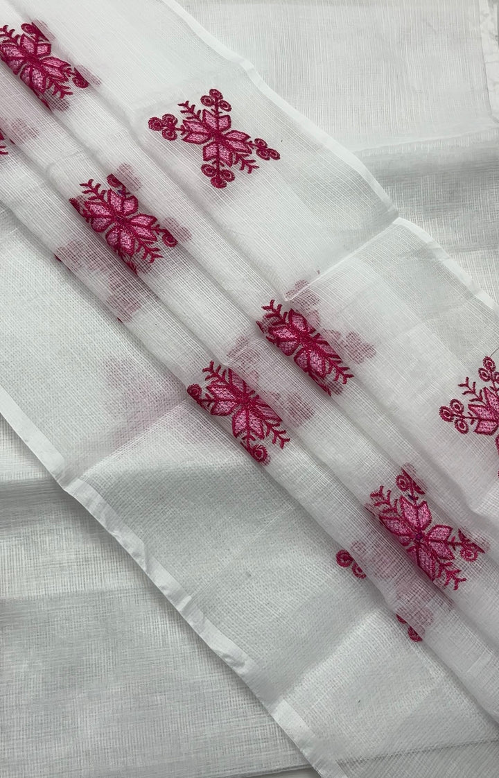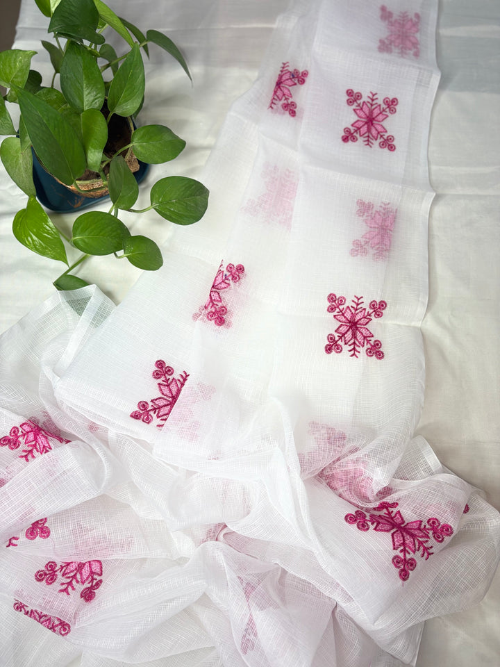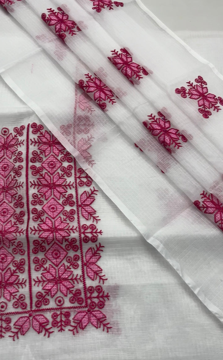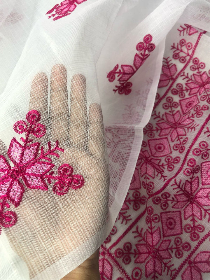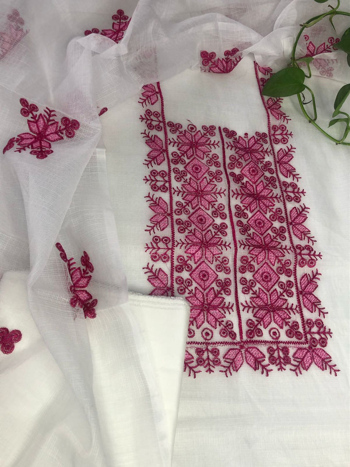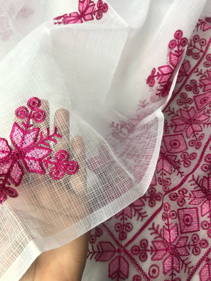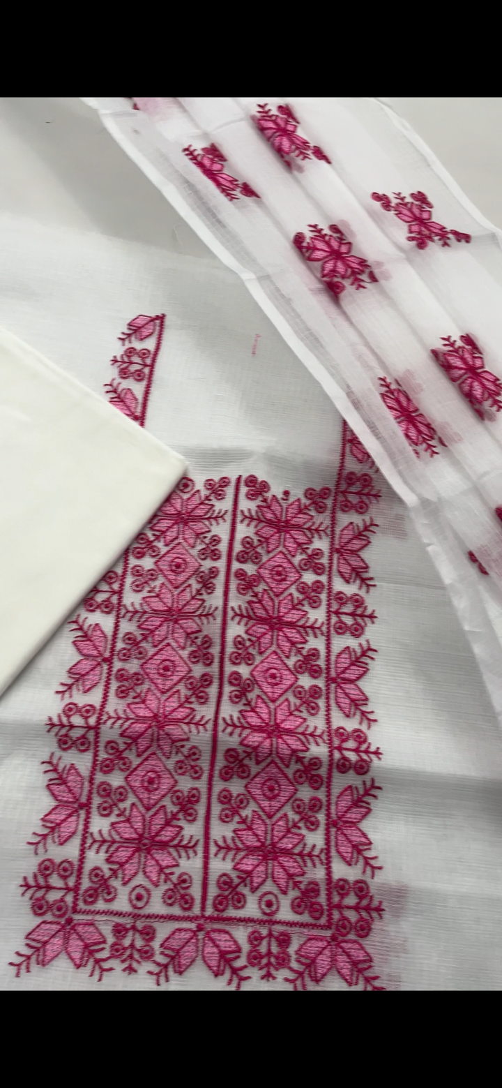Chanda- Beautiful Kota Doria Suit In white Colour With pink Embroidery Work