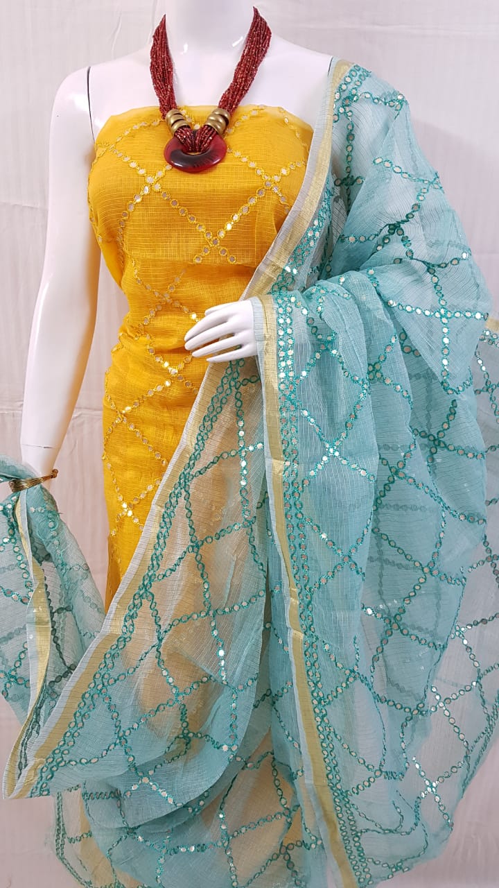 Fabric - Cotton Kota (3 PIECES SUIT 2.5 MTR TOP In Kota ,2.5 MTR Dupatta In Kota,2.5 MTR Bottom In Cotton)