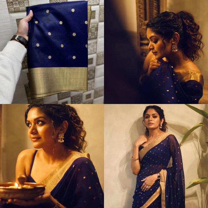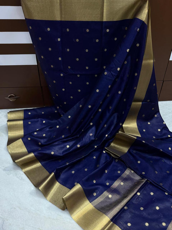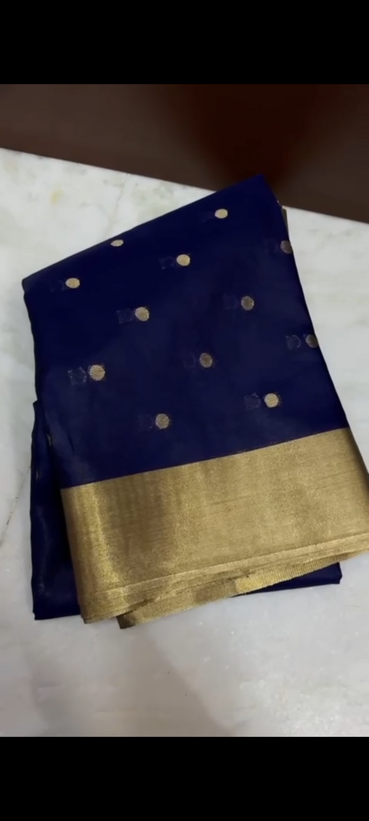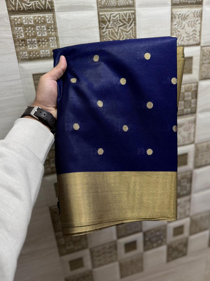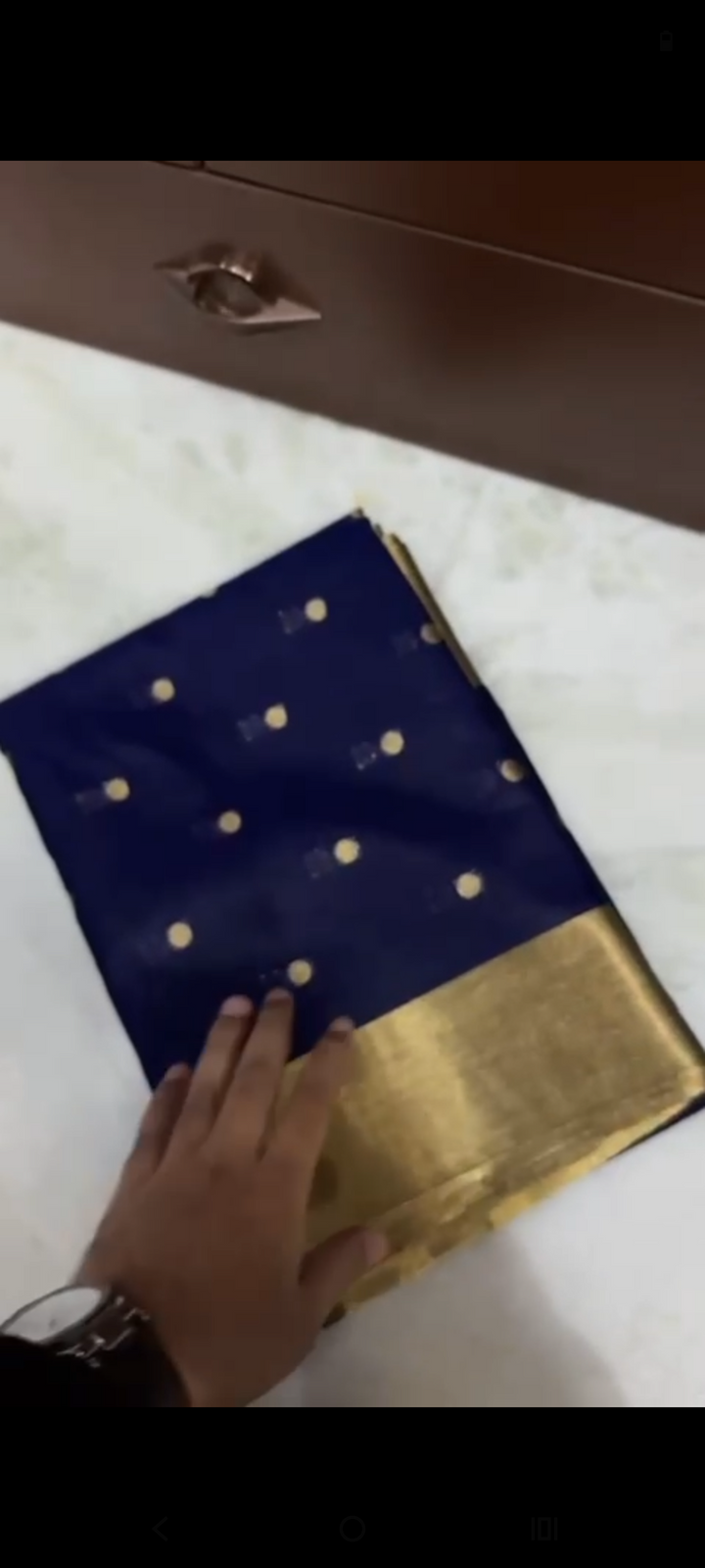 - Beautiful Navy Blue Banarasi Soft Silk Saree