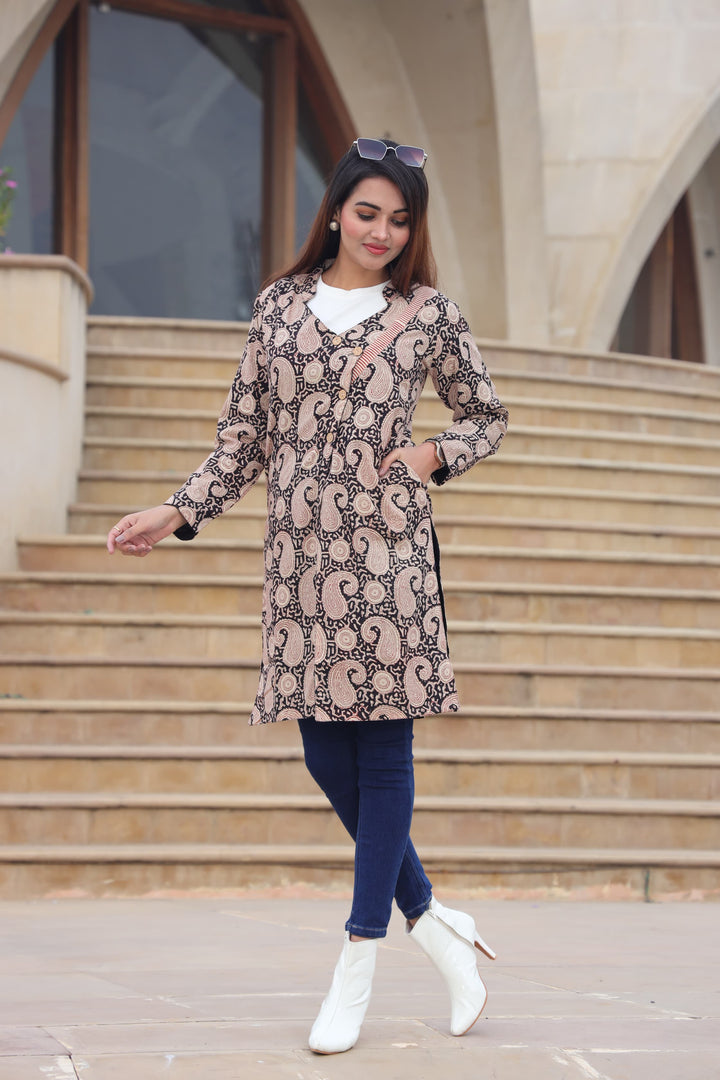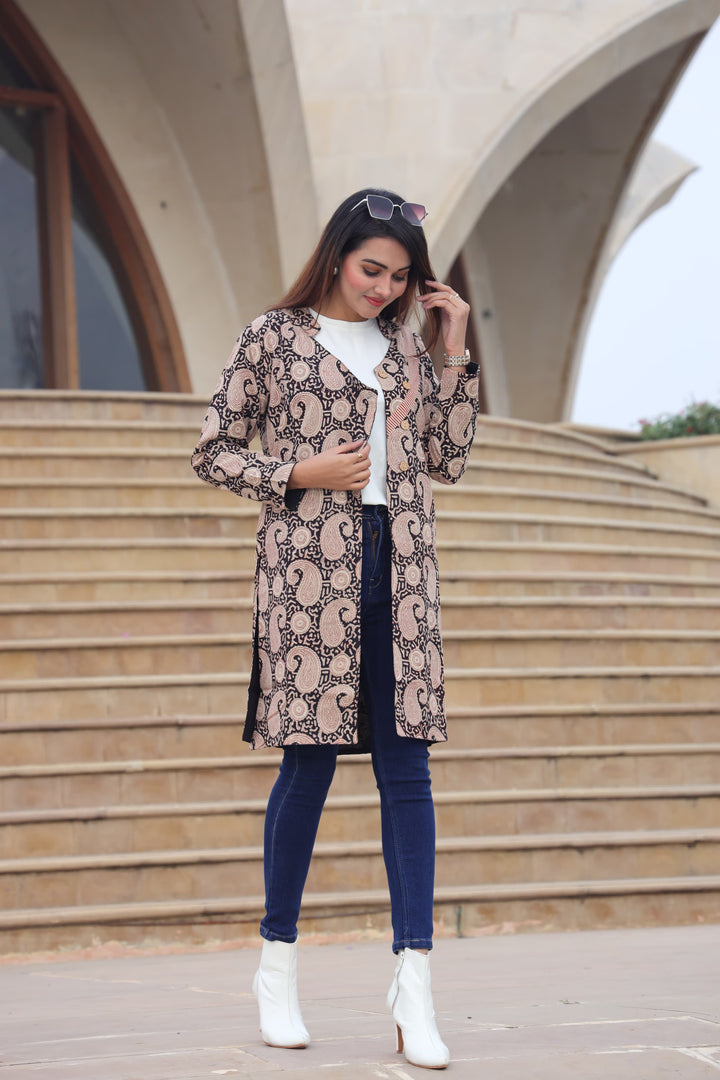 Beautiful Black Bagru Hand Block Printed Pure Cotton Winter Jackets