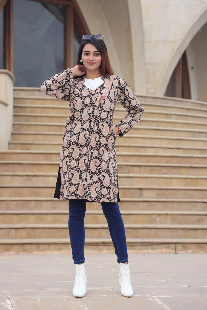 🍁 Black Bagru Hand Block Print Comfortable Pure Cotton Two Layers Winter Jackets 🍁