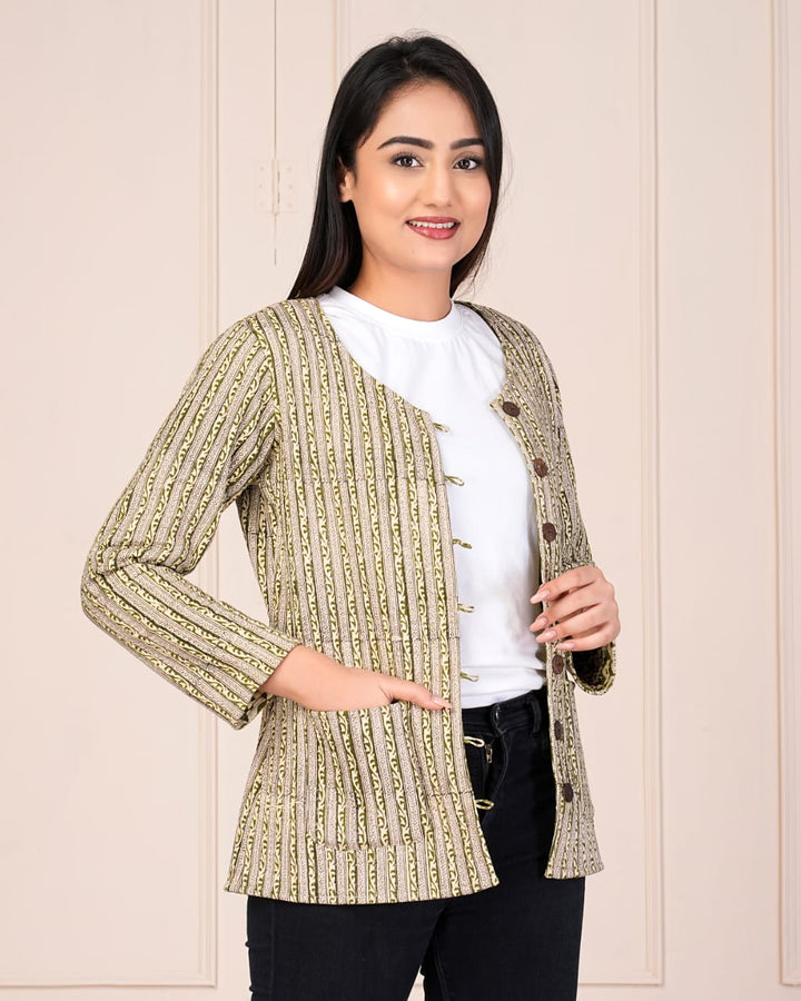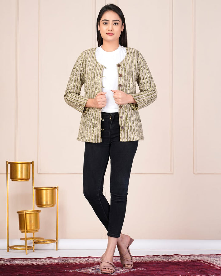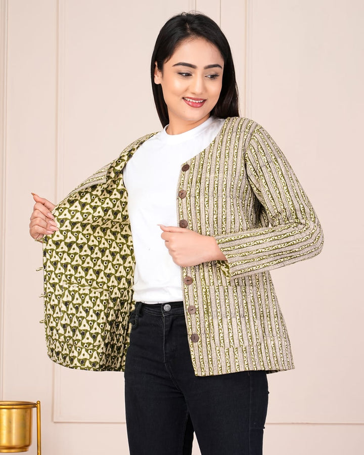 Beautiful Brown Green Pure Cotton Quilted Reversible Print Jackets