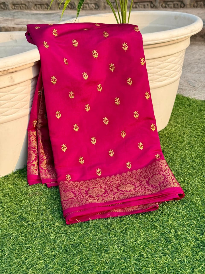 - Royal Pink Beautyful Banarasi Semi-Georgette Soft Silk Saree