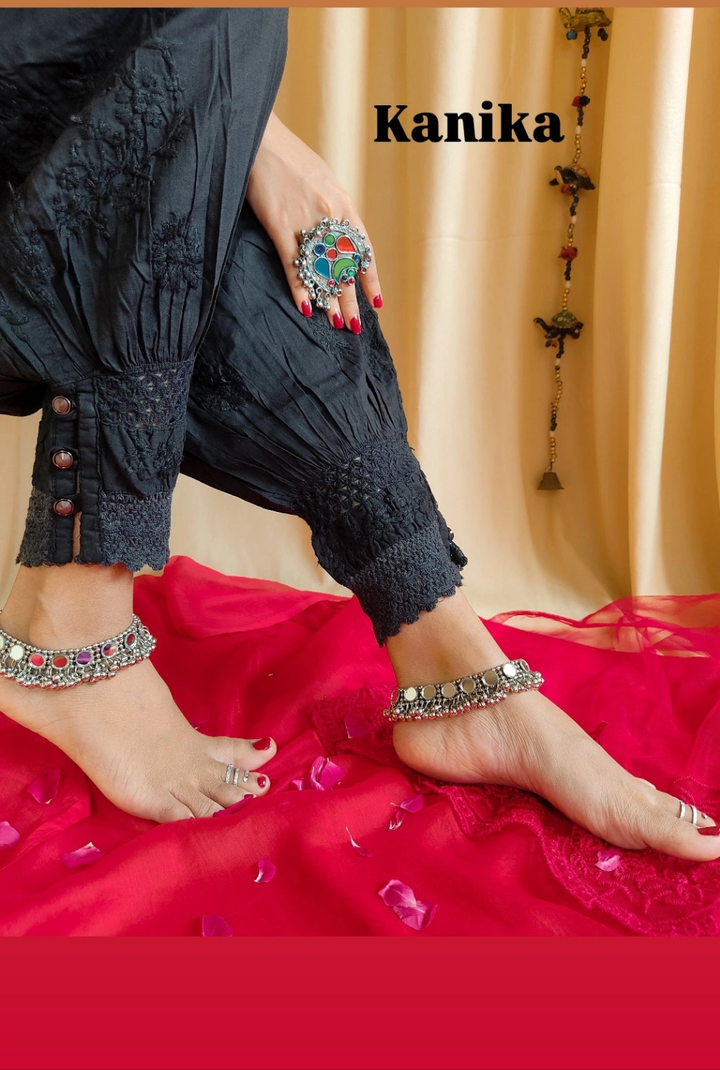 Styling Tip: Whether paired with a simple kurta or a more elaborate top, the Chikankari salwar effortlessly elevates your style with its classic charm.