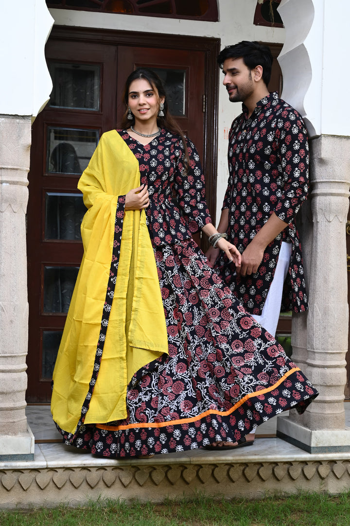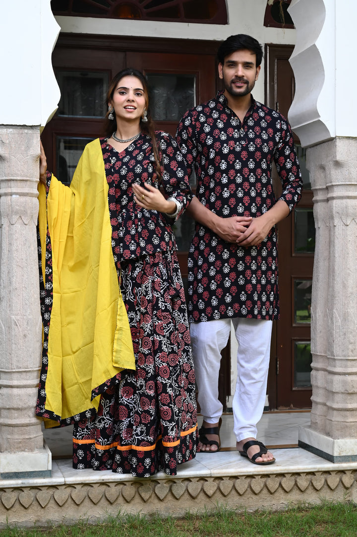 - Kurta:Ā Pure Cotton Bagru Hand Print & Pocket with Exclusive Button.