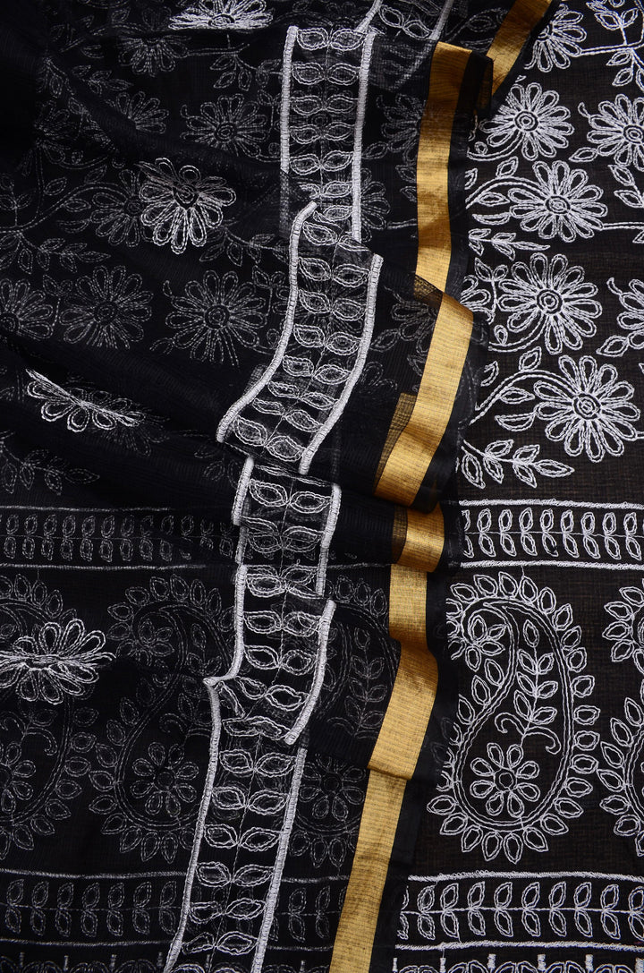 Neel- Black Embroided Cotton Kota Doria Suit Fabric With Dupatta