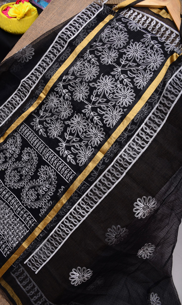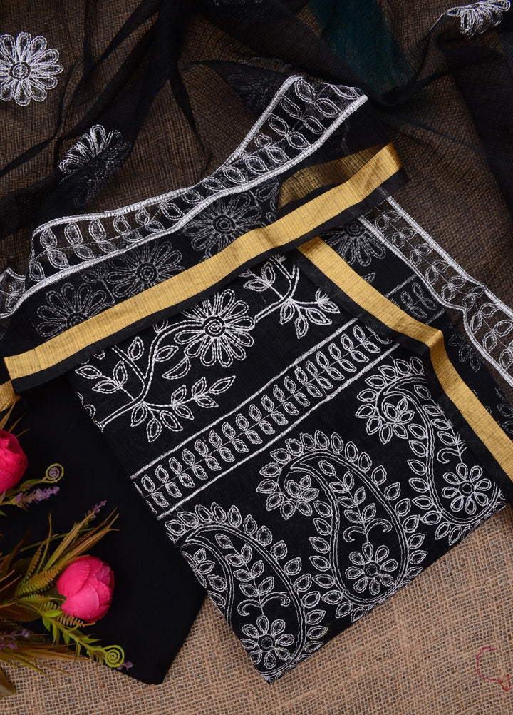 Neel- Black Embroided Cotton Kota Doria Suit Fabric With Dupatta (unstitched)
