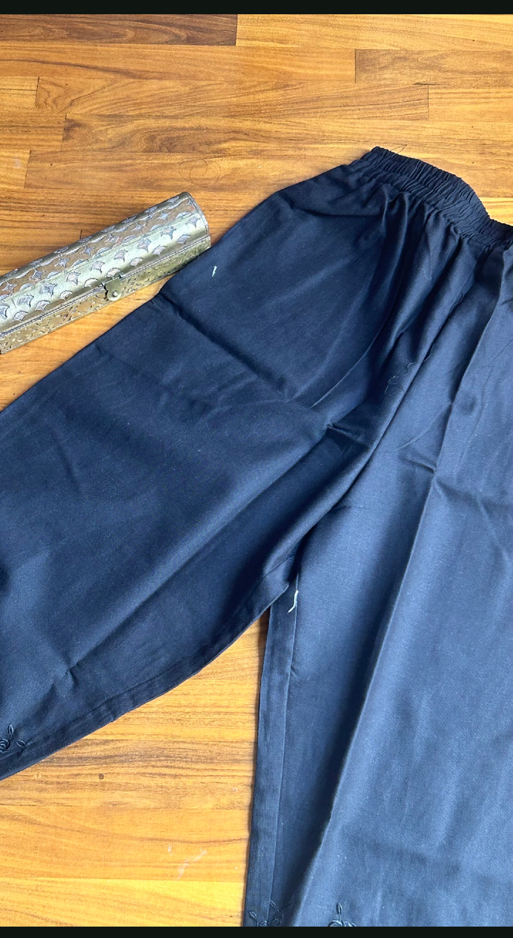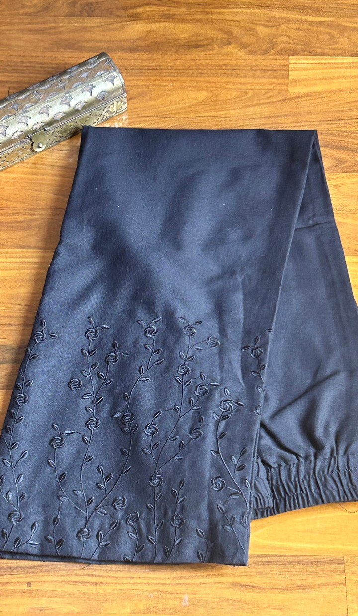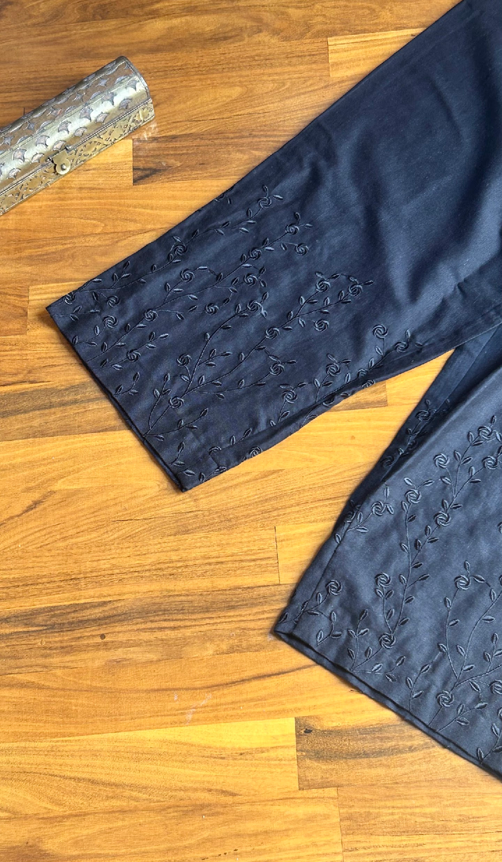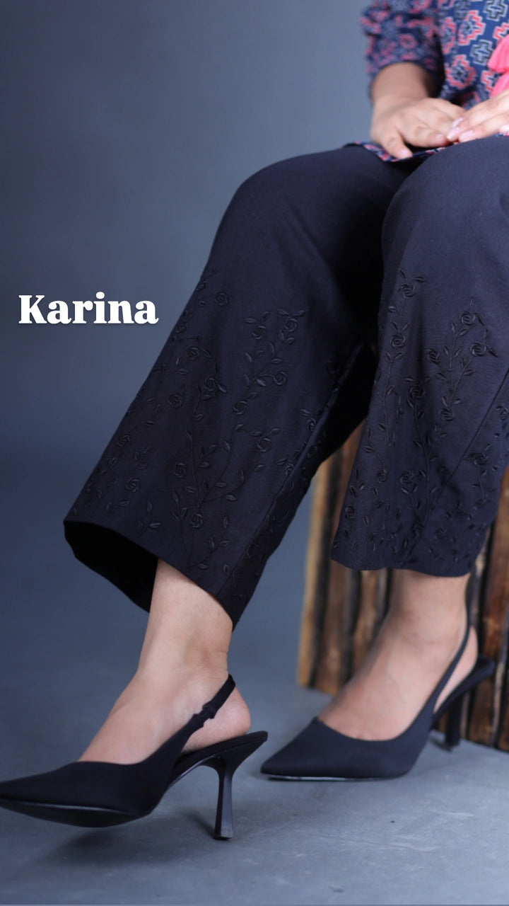 Karina Black Embroidery Straight Pant In Cotton For Women