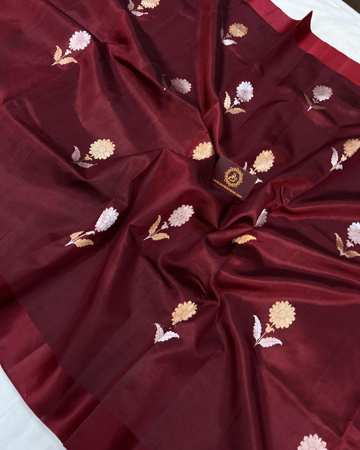 - Maroon Banarasi Semi-Georgette Soft Silk Saree