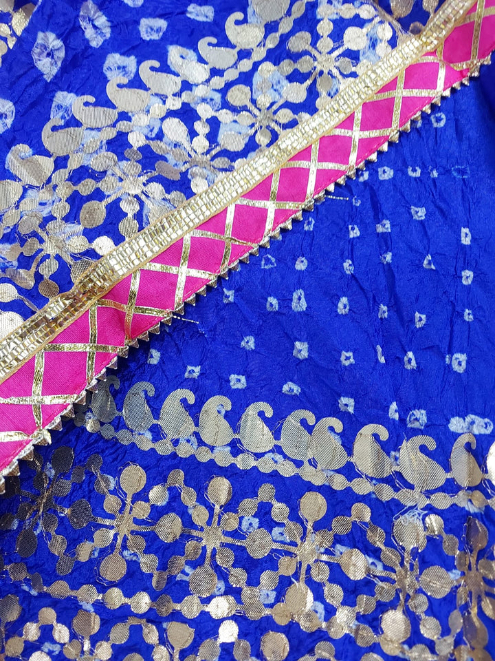 - Fabric : Banarasi Silk Hand-Made Bandhej With Gota Patti Border