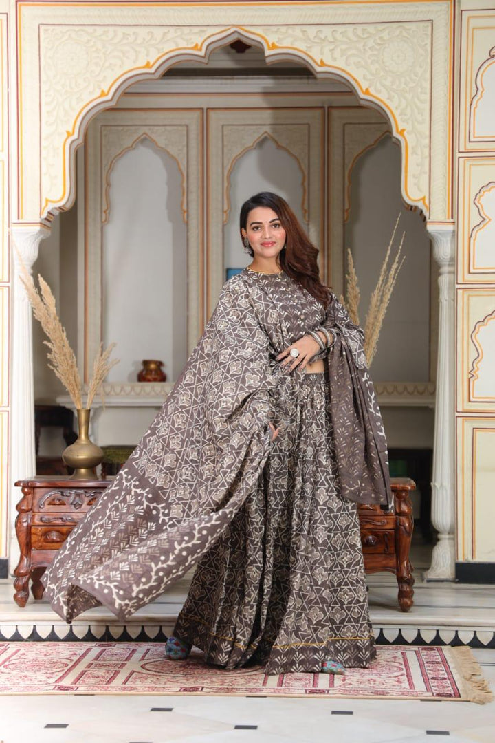 Brown Colour Bagru Print Flora lehenga choli Set