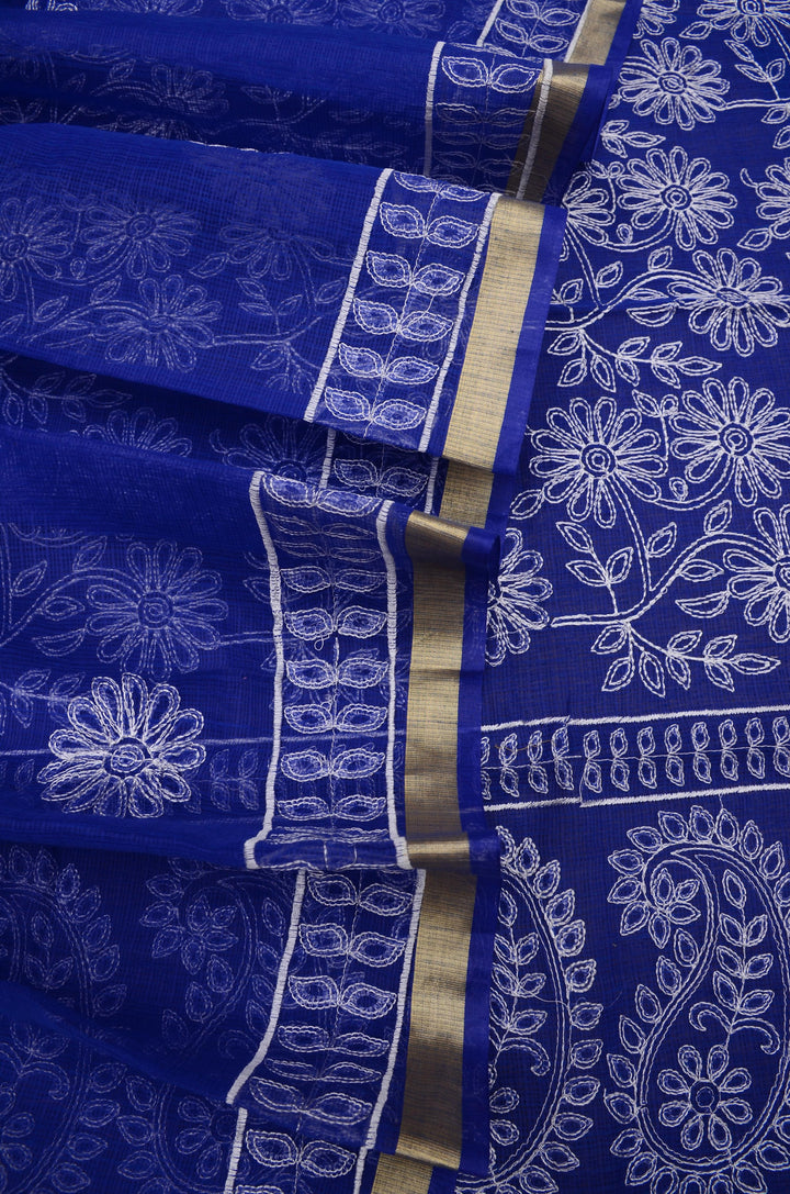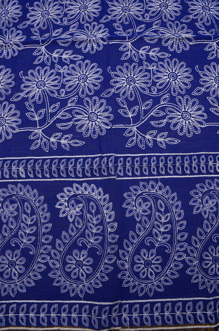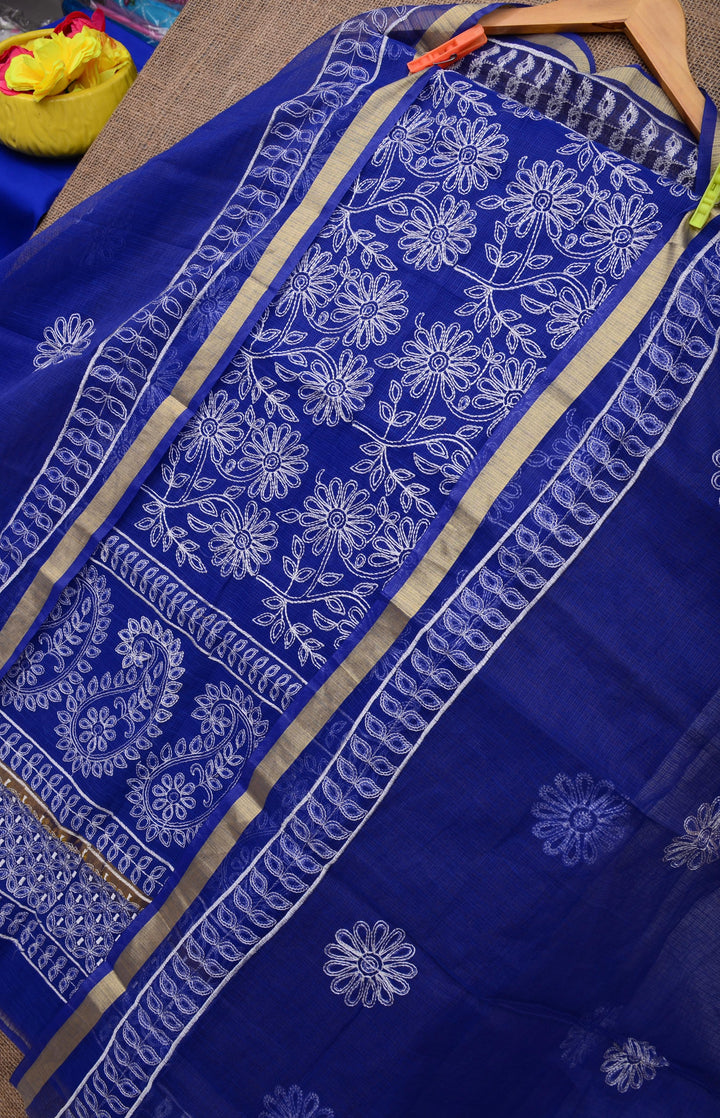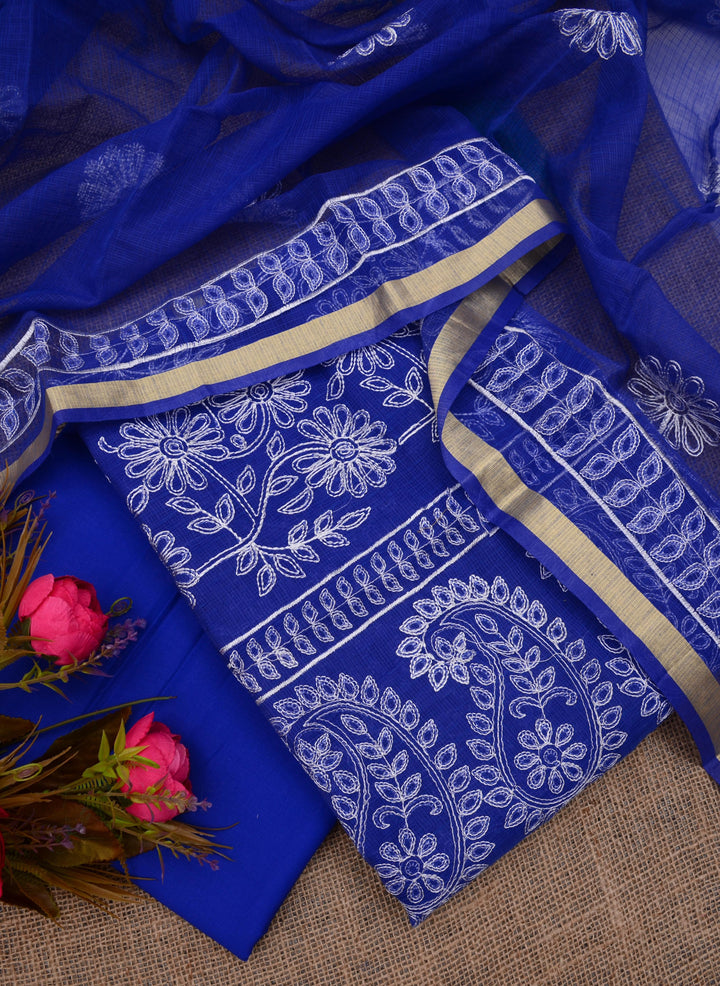 Palav- Blue Embroided Kota Doria Suit Cotton Fabric With Dupatta (unstitched)