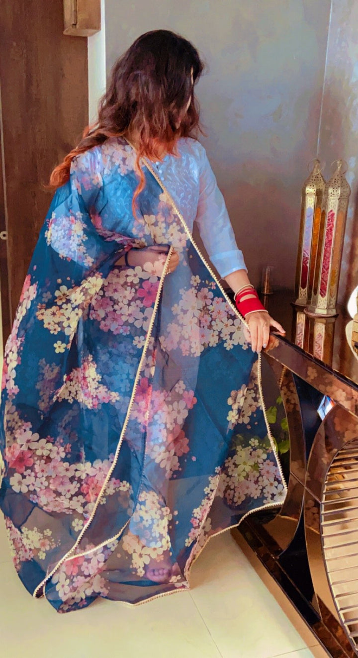 Blue Floral Organza Dupattabest Deals Of Navratri On This Wine Flral Organza Dupatta. This Traditional Dupatta Is 2.5 Meter In Length And Goes Perfectly On Any Plain Fabric Suit. Shop Online At Jhakhas.Com, Designer Organza Dupatta At Best Price. ,Free Shipping And Cod Available, Shipping Worldwide.