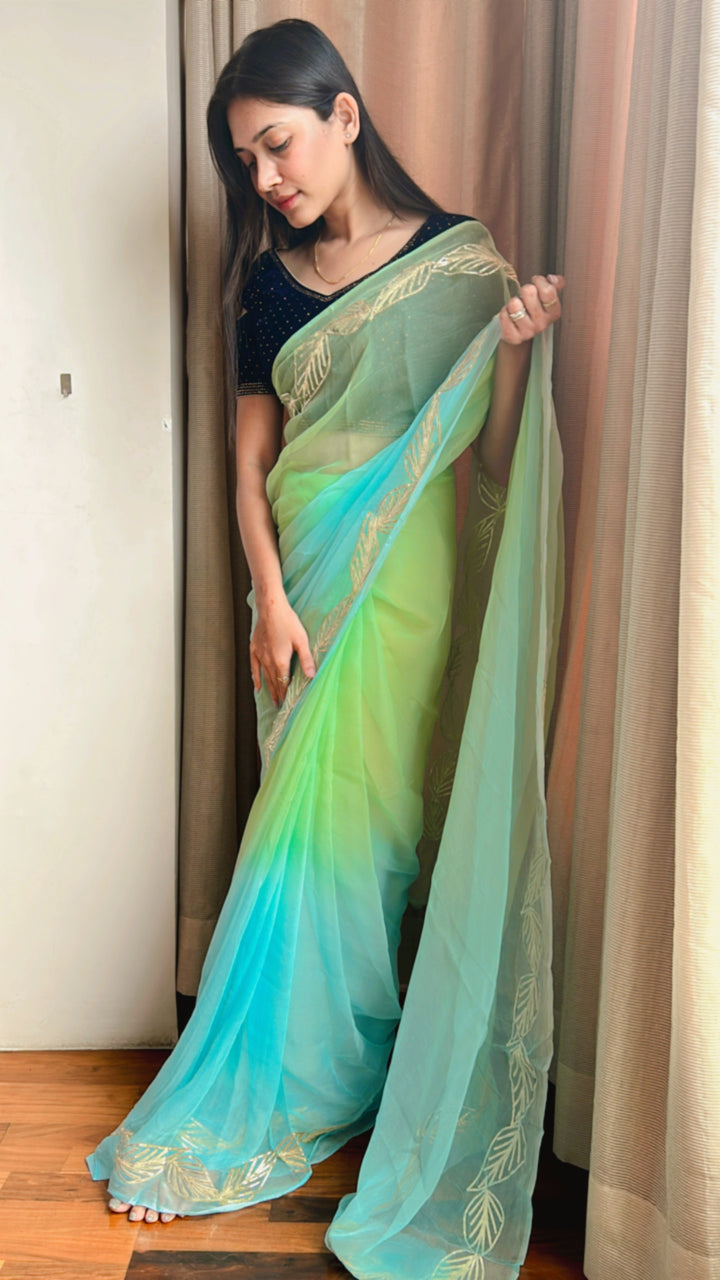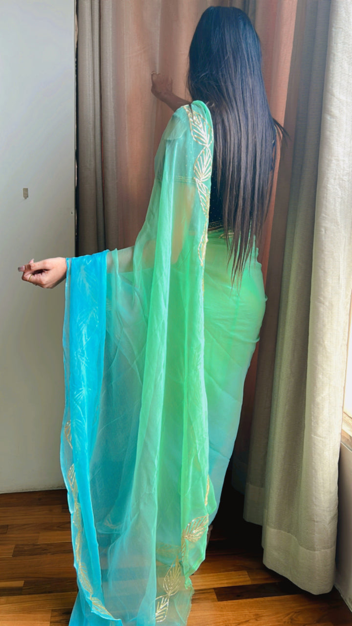 Sea Green Gota Patti Pure Chiffon Design Saree