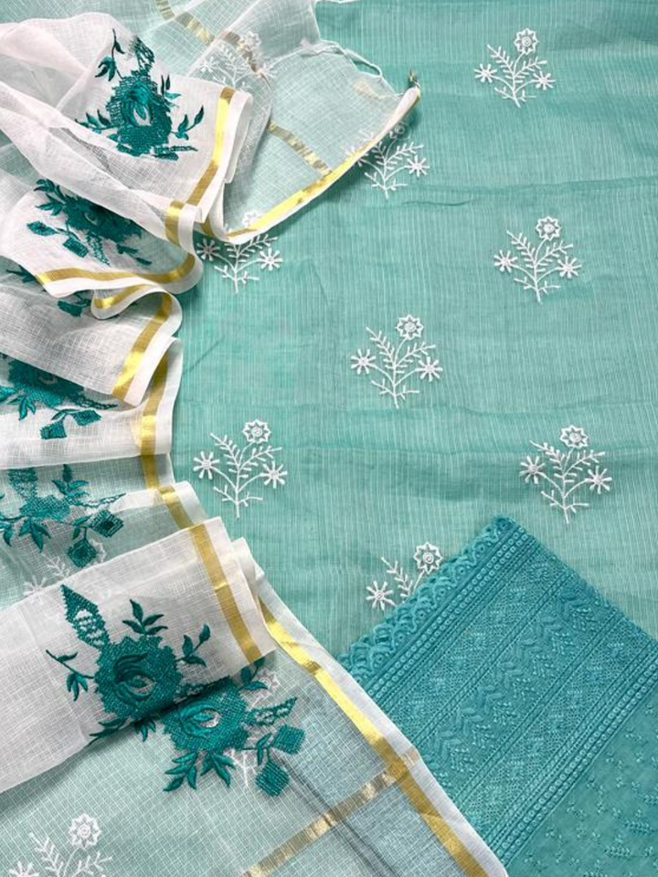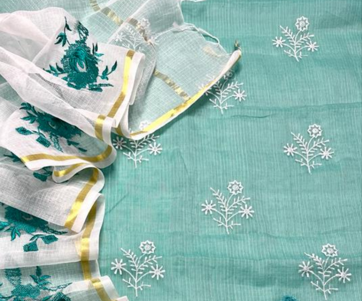 Sugandhi- Blue Embroided Kota Doria Suit Fabric With Dupatta (unstitched)