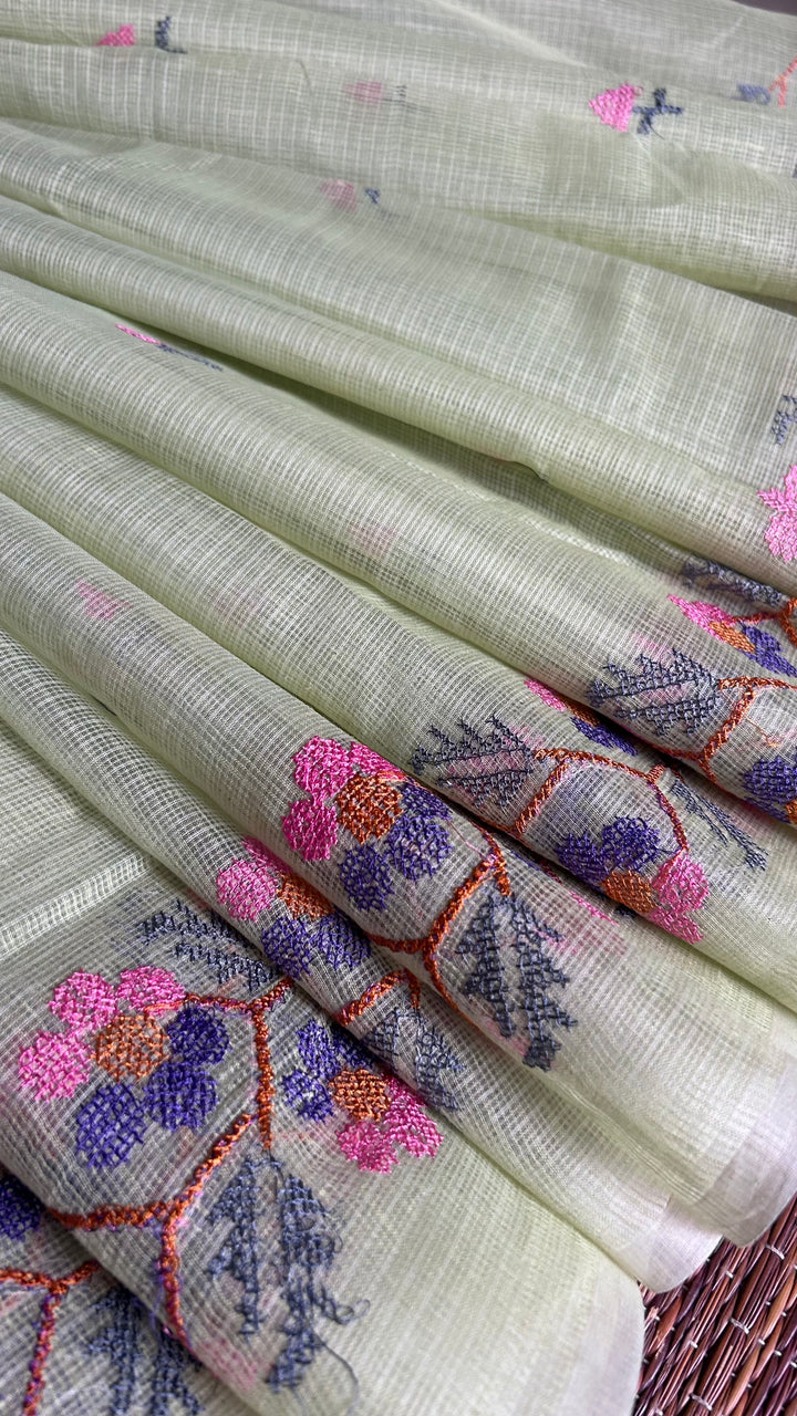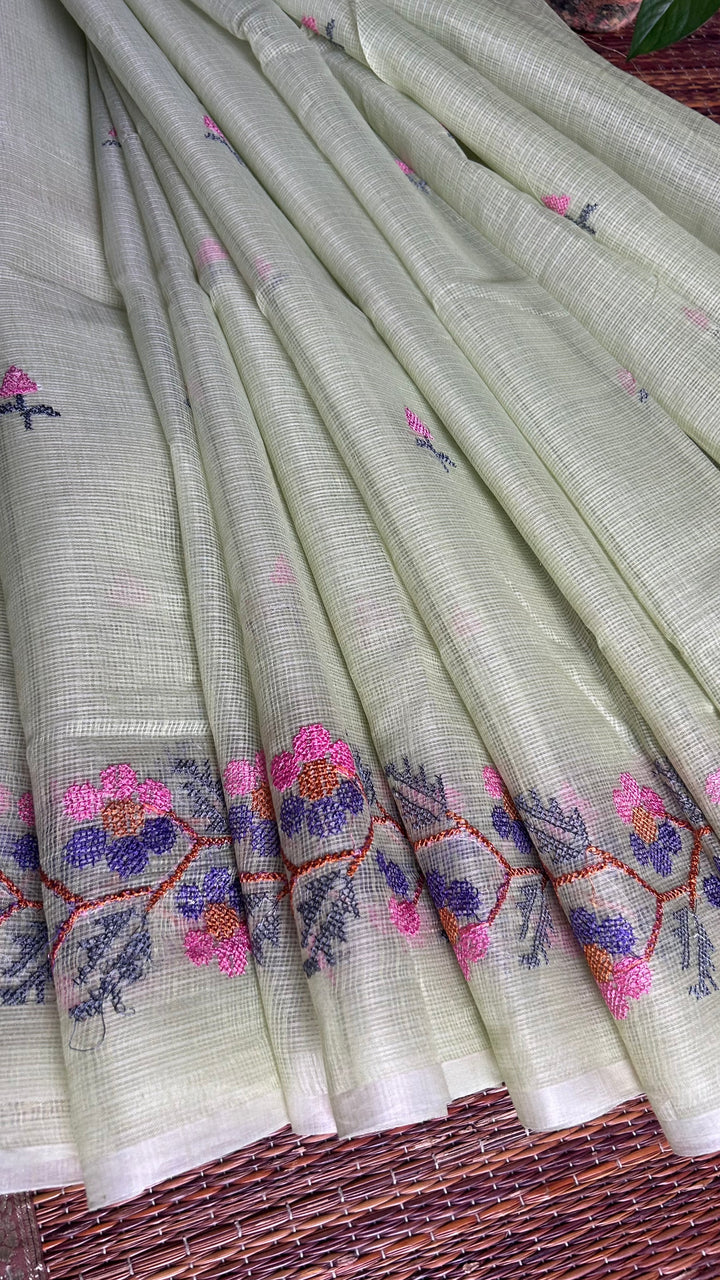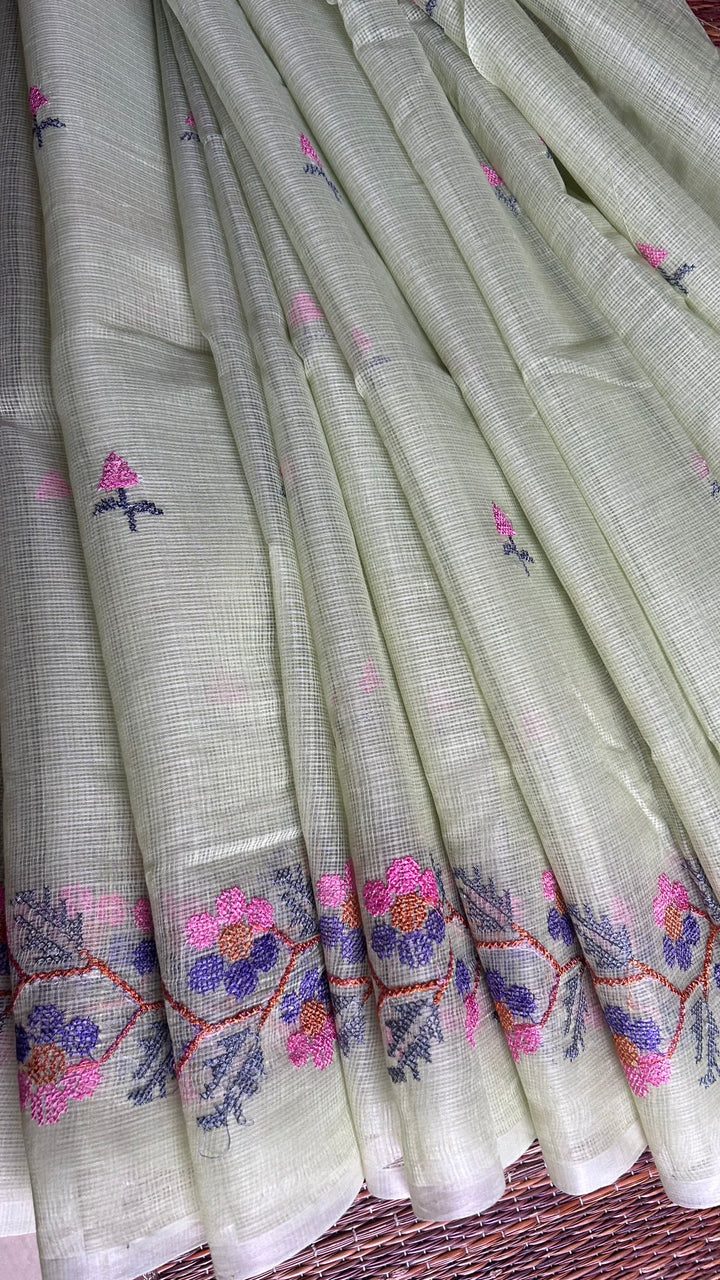 Chitralekha- Cross Stitch Kota Doria Embroidery Work Saree In Pista Green