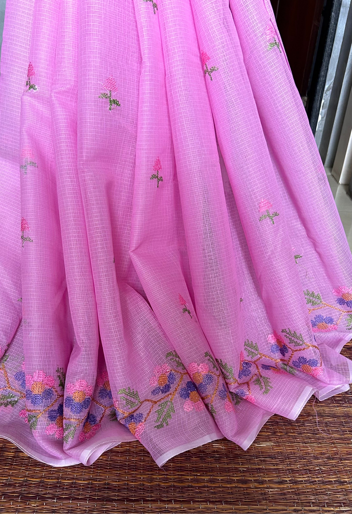 Transform your wardrobe with our Pink Kota Doria Embroidery Work Saree!