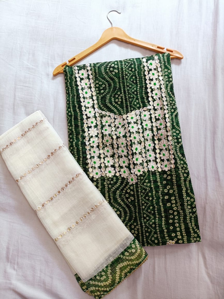 Panna- Green Kota Doria Gota Embroidered Suit (unstitched)