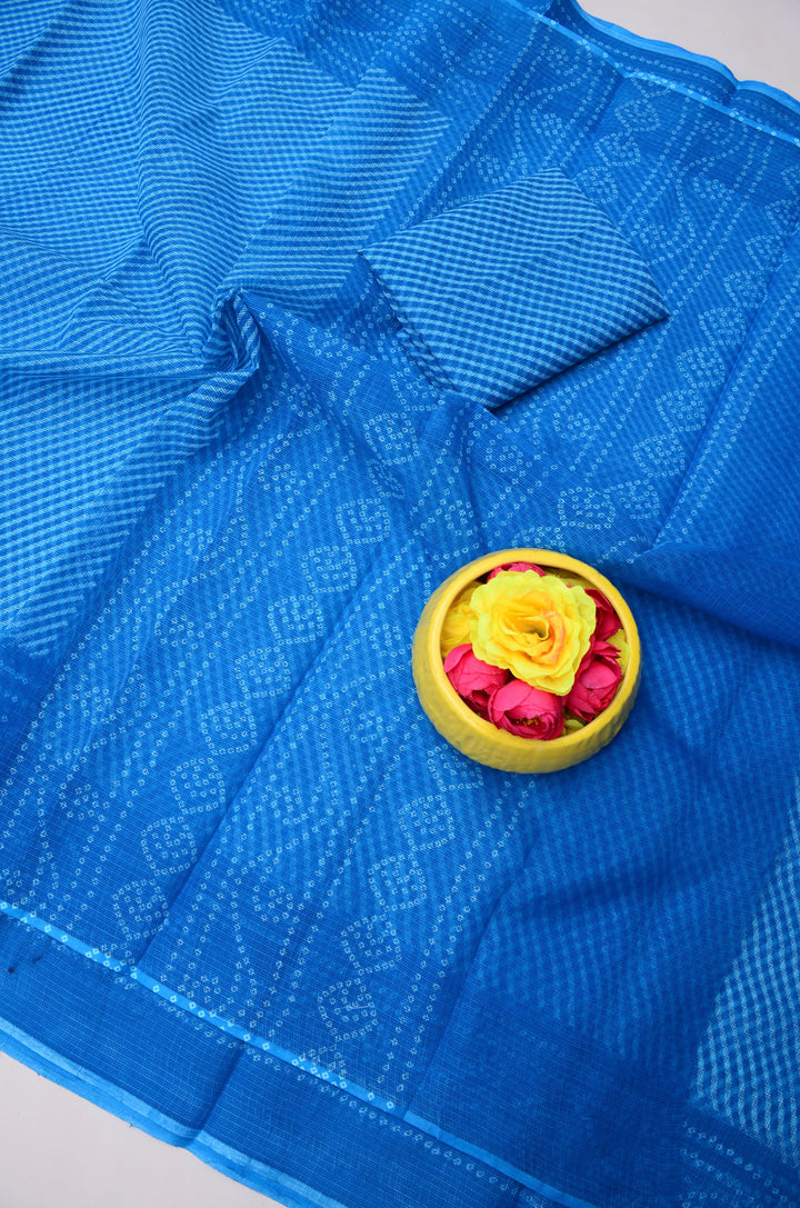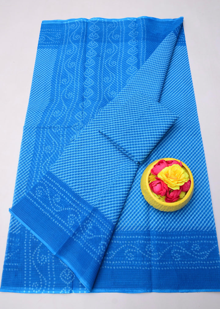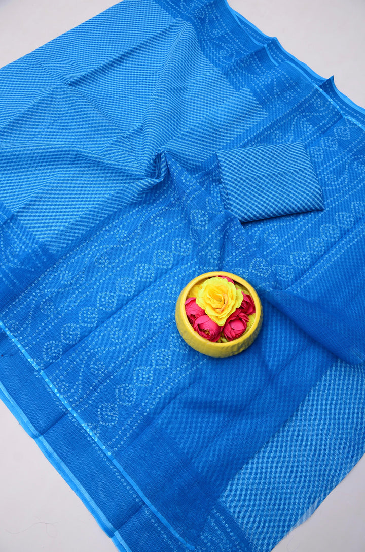 - Tilottama- Blue leheriya Bandhej Print Kota Doria Saree