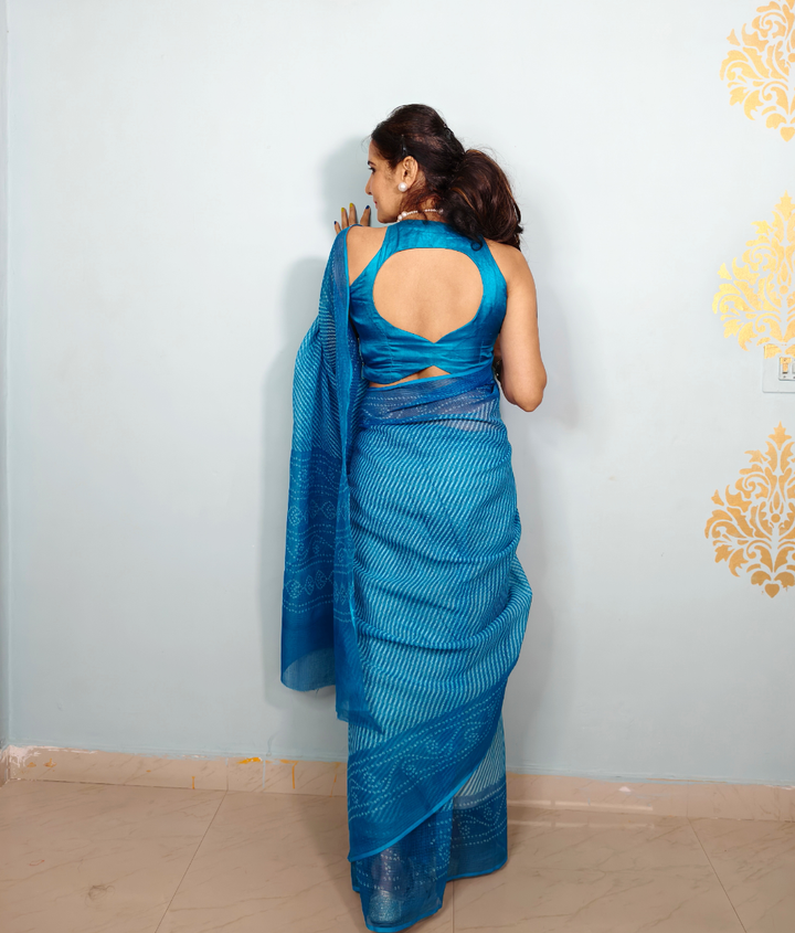 Tilottama- Blue Kota Doria Leheriya Bandhej Saree